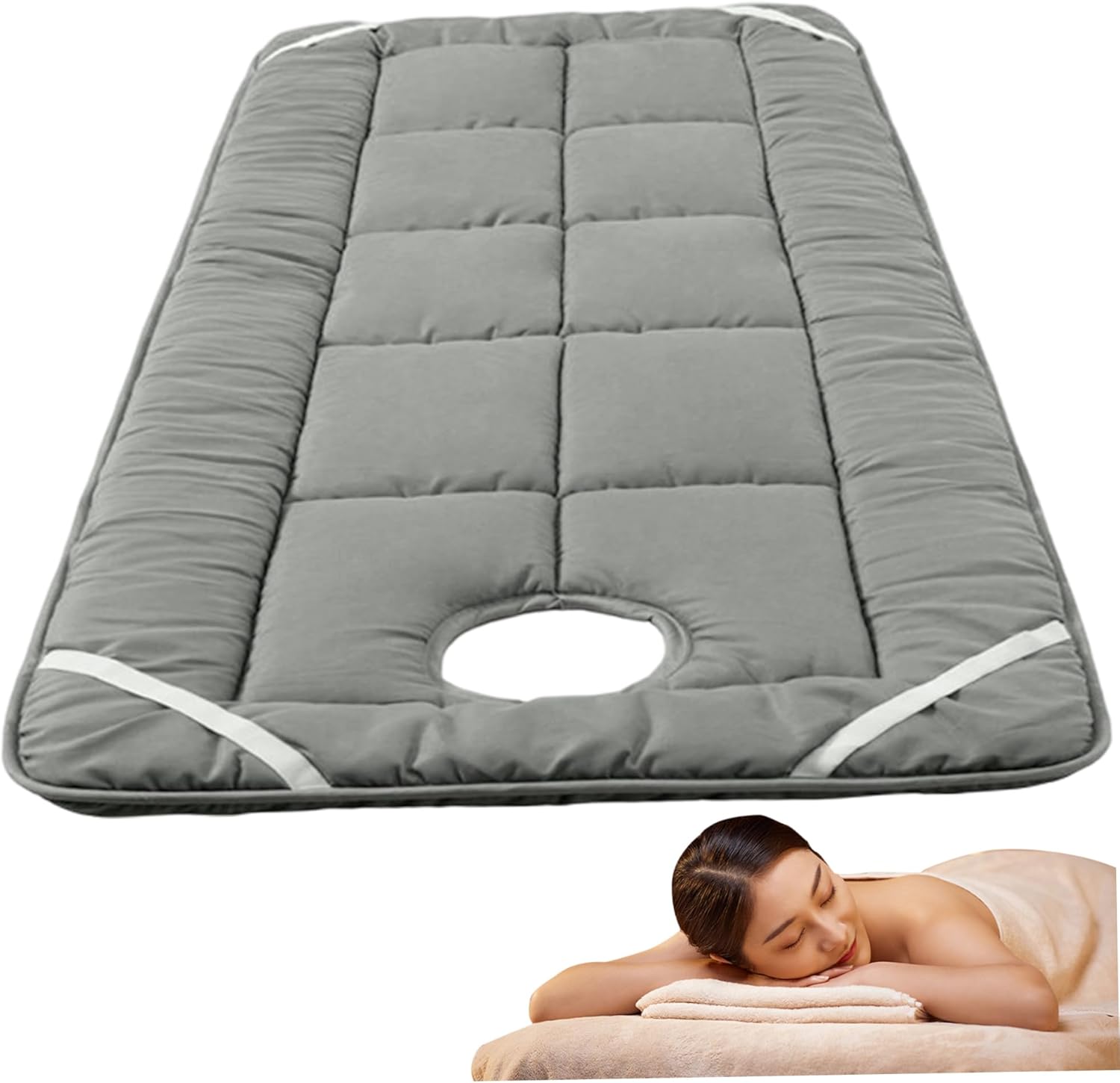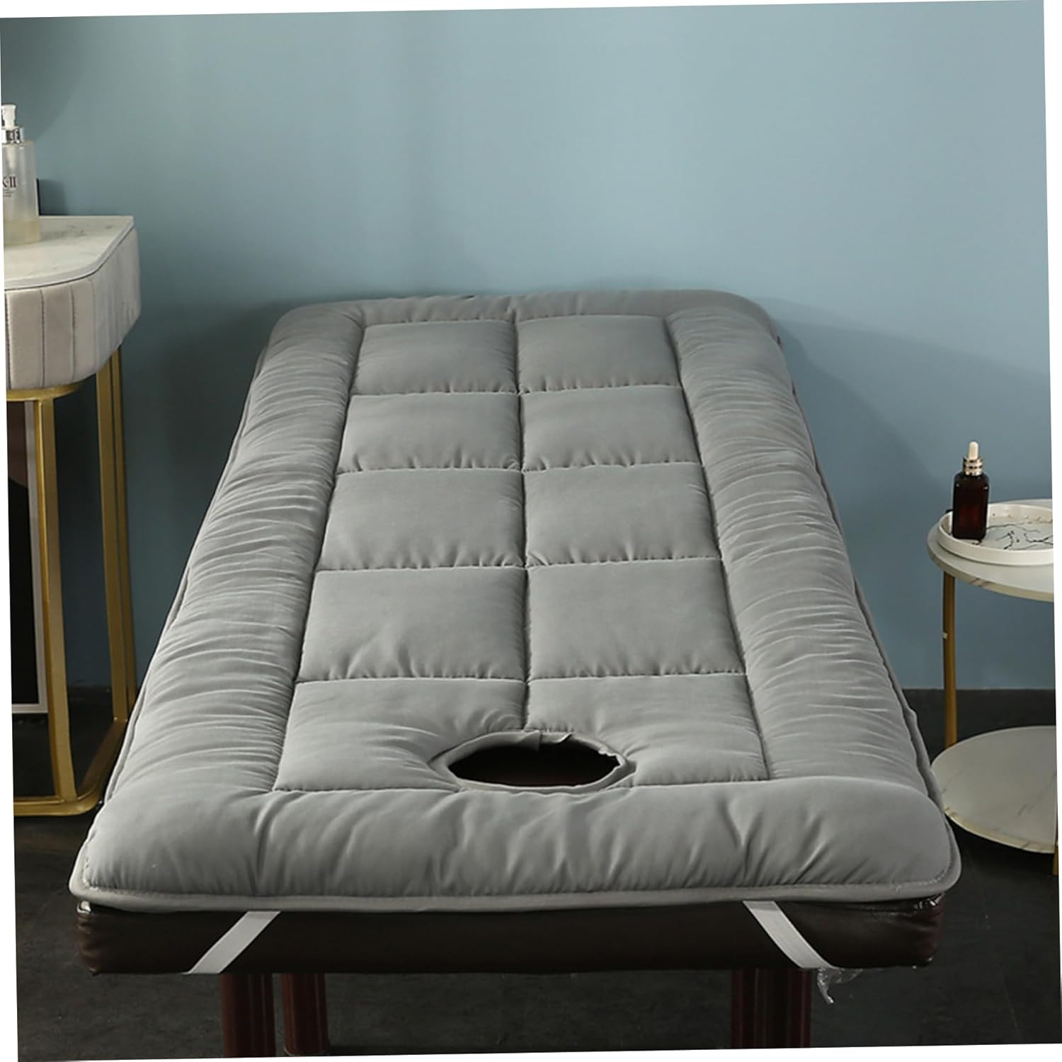 Description: Transform your massage experience with the Massage Table Pad with Face Hole 31x75in Thickened Soft & Comfortable Cotton Massage Table Padding Topper for Beauty Center, Spa Woman Supplies. This quality massage table pad features a thickened, soft cotton material that unparalleled comfort during sessions, making it perfect for professionals and home users alike. Its stable construction ensures long-lasting performance, while the ergonomic face hole design allows for natural breathing and maximum comfort. Versatile and practical, this pad fits perfectly on standard massage tables, enhancing the overall experience in various settings. Easy to clean and maintain, this topper ensures a hygienic and pleasant environment for all users, making it an essential addition to any massage setup. Whether you're a professional or a home user, this massage table pad is designed to meet your needs and provide a luxurious, relaxing experience every time. Features:. Massage Table Pad. -Color: grey. -Material: cotton. -Size: about 80*190cm/31*74.8inch. Note:Manual measurement, please allow slight errors on size.The colors may exist slight difference due to different screens. Package Including 1 x Massage Table Pad