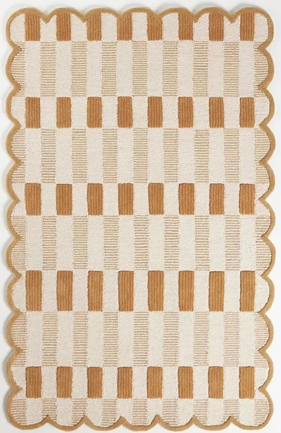Elevate your living space with the Matilda Goad Plaid Scallop Wool Hand Tufted Area Rug, a luxurious designer piece that exudes sophistication and warmth. Crafted from premium wool, this irregular-shaped rug boasts a captivating plaid pattern with scalloped edges, adding a touch of whimsy to any room. Hand-tufted with meticulous attention to detail, it offers exceptional quality and durability. Suitable for bedrooms, living rooms, or hallways, this rug effortlessly blends style and comfort, inviting you to sink your toes into its plush pile. Embrace the timeless allure of this Anro creation and transform your space into a cozy, inviting haven.
