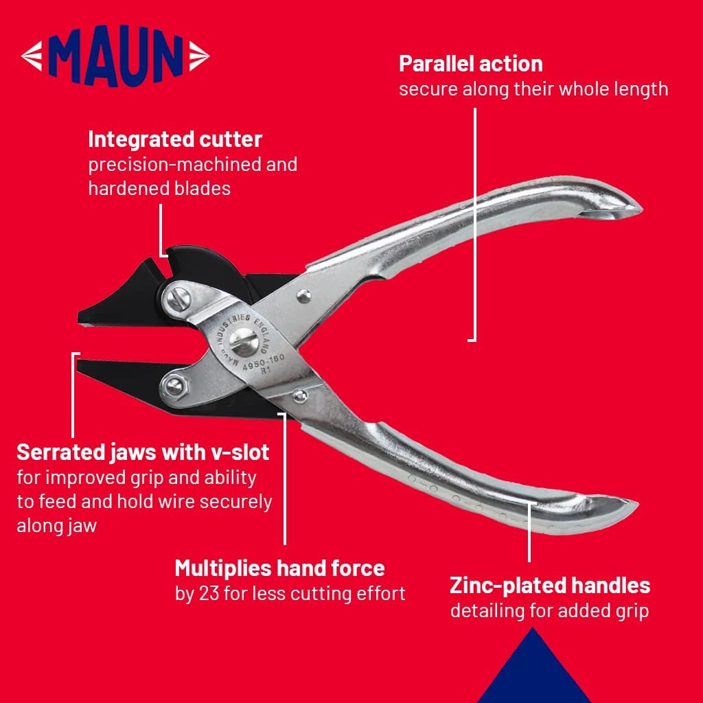 Maun side cutting plierSide Cutter which is extremely robust and with very high leverage, well capable of cutting ISO standard piano wire.Size. 6.1/2in.