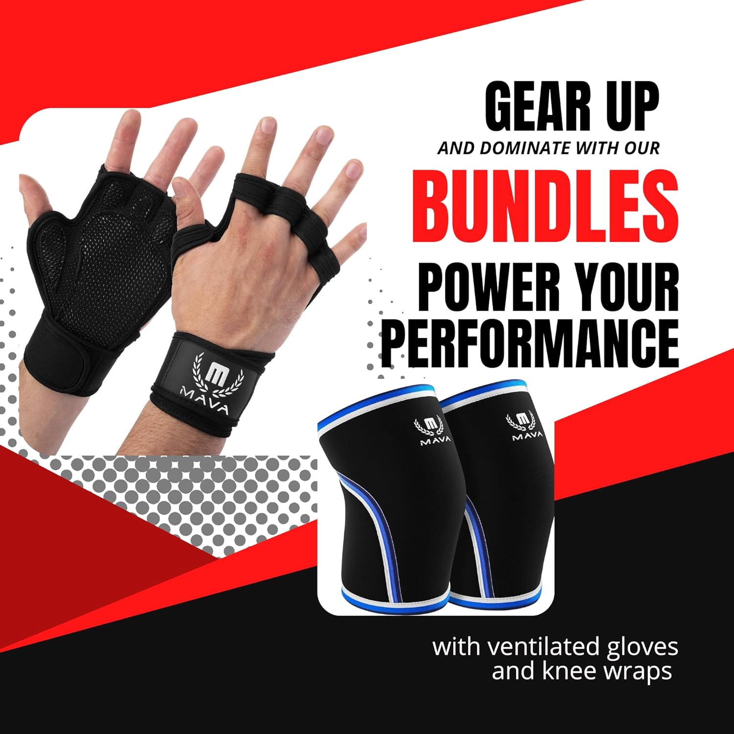 Mava Sports Ventilated Weightlifting Workout Gloves with Wrist Support for Men and Women and Mava Sports Knee Compression Sleeves for Weightlifting, WOD, Gym Workout, Powerlifting (Black XL, XXL)