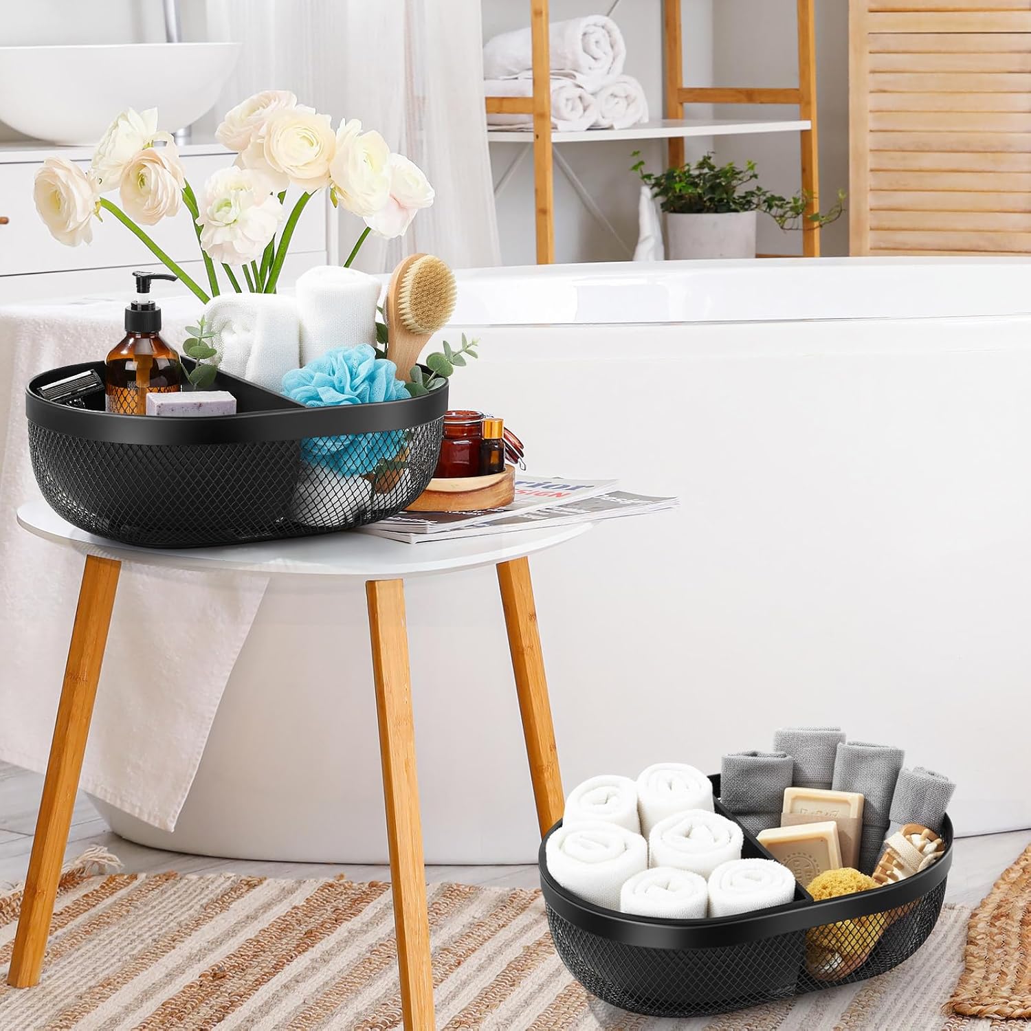Features: Modern style for home: As a decorative mesh iron basket, it combines stylish design with practical functions, adding fun to home while keeping the space tidy and organized. This iron tray wire mesh basket is not only practical but also enhances the aesthetics of the home environment. Lightweight for daily use This tray wire mesh basket has a lightweight design, making it easy to carry and place. The breathable mesh structure prevents odors from sealed items, especially suitable for storing perishable foods like fruits and vegetables. The lightweight and breathable features make the mesh iron basket more suitable for daily home use. Specifications: Material: Mesh basket: iron Tray: PP Color: black Size: 12.13 inch x 8.86 inch x 4.06 inch Package includes: 4 x Mesh baskets Notes: Manual measurement, please allow slight errors on size. The color may exist a slight difference due to different screen displays