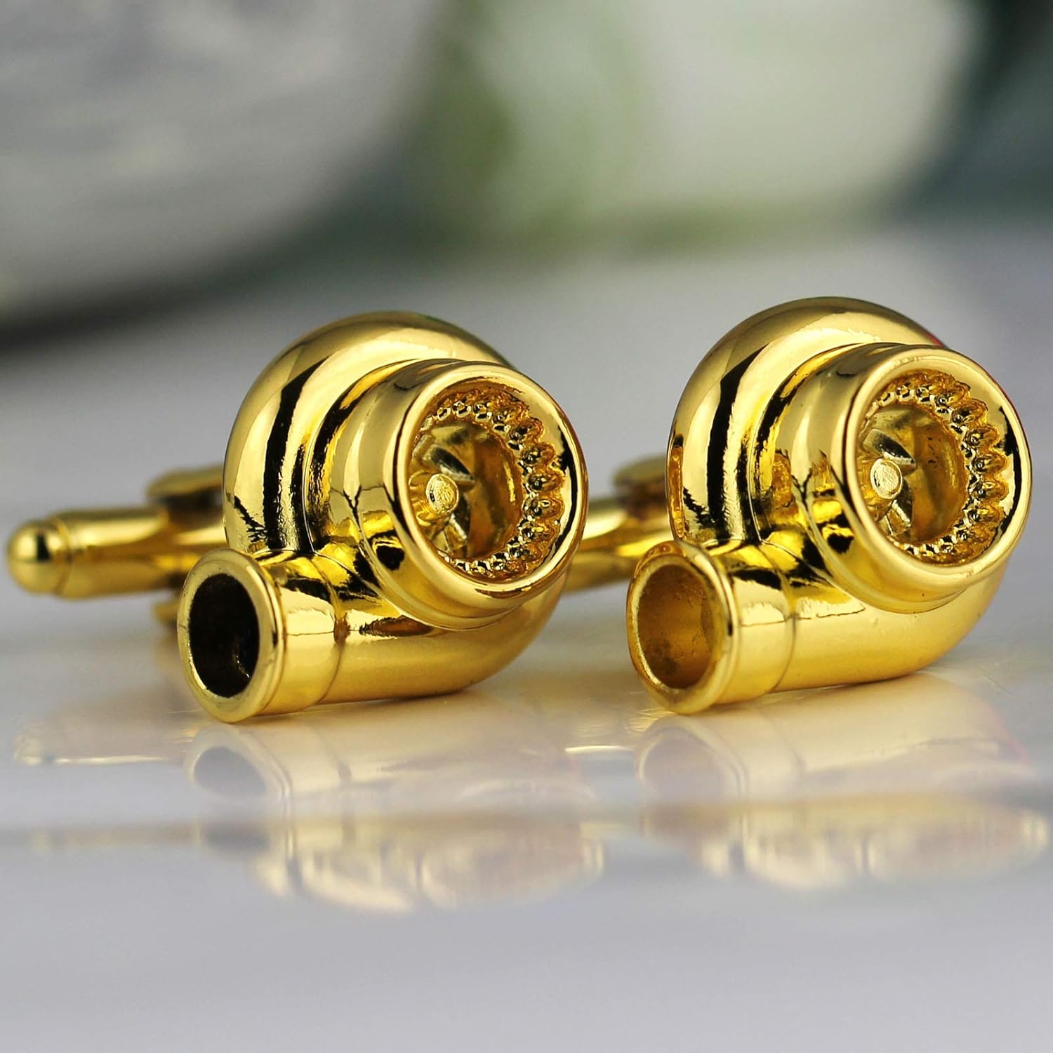 Specifications Brand: Maycom Material: Zinc Alloy Color: Gold Condition: New Package: Gift Box Package includes: 1 Pair Cufflinks Size & Weight Turbo: Turbo L*W*H 0.71*0.71*0.39 inches (1.8*1.8*1cm) Total Height: 0.98 inches (2.5cm) Net Weight: a pair 0.78 oz (22g) Using Details Be careful not to scratch the surface with sharp objects. If the surface is stained during use, you can use hand sanitizer to clean it directly. Features very creative fashion accessories A gift for car lovers full of personality highlighting individuality Cautions Due to the small size, the turbine blade is fixed and can't spin.