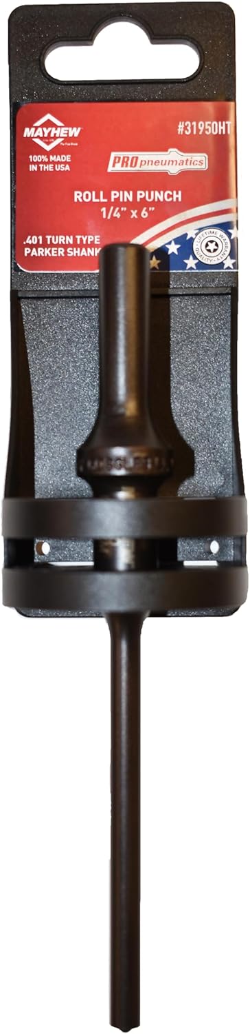 The Mayhew Pneumatic Roll Pin Punch is used to drive in and remove roll pins or other hollow tension pins. An original Mayhew patented design with a rounded end that fits snugly within a roll pin. 0. 401 shank. Made in the USA. Founded in 1856, Mayhew Steel Products (Mayhew Tools) is the oldest punch and chisel manufacturer in the United States. As we’ve grown from a small tool house to the industry leader, there’s only one thing that hasn’t changed our dedication to quality, reliability and craftsmanship. That’s why we’ve become the tool of choice for certified technicians and professional mechanics across the country and have found a home in the belts of do-it-yourselfers as well. Over time our product line has grown but our passion for manufacturing quality hand tools continues as we serve the Industrial, Automotive and Hardware industries. Mayhew is ISO 9001:2015 Certified.