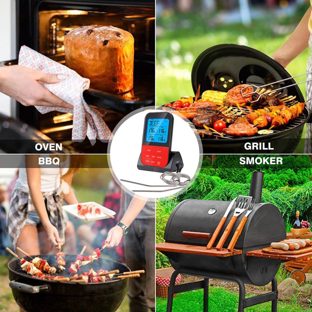 Description:- FEATURES: The oven thermometer is designed with a step-down probe to quickly alert you to the slightest temperature change within seconds.- EASY TO USE: With front buttons, flip-out countertop stand, place the meat thermometer anywhere in the kitchen or grill.- MODE: Digital kitchen timer features countdown and countup ability.- LCD DISPLAY: Grill Thermometer displays food/oven/grill/smoker temperature and timer for the most intuitive experience when cooking outdoors at night.- TEMPERATURE RANGE: Set your desired food temperature and temperature range beep to alert you if the temperature is outside your settings Fixed range; temperature range alarms are designed for use with smokers, grills and grills.Specification:Color: As shownMaterial: Plastic, Stainless SteelSize: Host: 7.3 x 2.2 x 11.6 cm/2.87 x 0.87 x 4.57 inchBase: 8.8 x 5.5 x 4.3 cm/3.46 x 2.17 x 1.69 inchPower supply: Four 3A dry batteries (not included in the package)Package Included:Thermometer x 1Probe x 2Base x 1