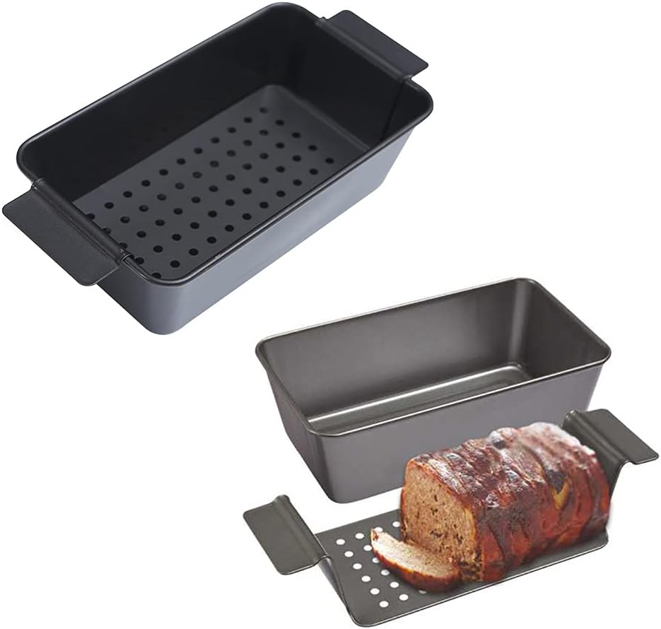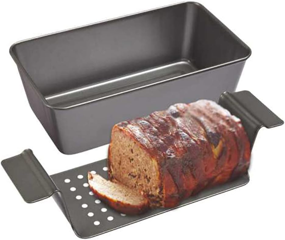 Meatloaf Pan With Insert Rack For Home Indoor Outdoor Barbecue Tray Nonstick Baking Loaf Pan Kitchen Cooking Tool and Features Perforated insert: A perforated insert drains fat away, leaving you with a leaner, meal; the side handles easily lifts the insert out of the pan for the fastest, neatest loaf removal ever.Features:Even cooking multi-purpose pan made from heavy-gauge carbon steel for superior heat conduction and even baking; smartly constructed with folded corners and a wire rod reinforced for rim that prevents warping.Nonstick coating: Pan is silicone based with nonstick coating that ensures superior nonstick performance and easy food release; perfect to use when making Easy to Dishwasher safe, however hand-washing is recommended to extend the product life Sturdy carbon steel construction provides dependable baking and roasting performance Specification Carbon SteelSize: approx.31x14.6x7.6cm/12.20x5.74x2.99inColor:BlackQuantity: 1PcNote:Please allow 0-1cm error due to manual measurement. pls make sure you do not mind before you bid.Due to the difference between different monitors, the picture may not reflect the actual color of the item. Thank you!Package Contents:1xMeatloaf Pan(other accessories demo in the picture is not included.)