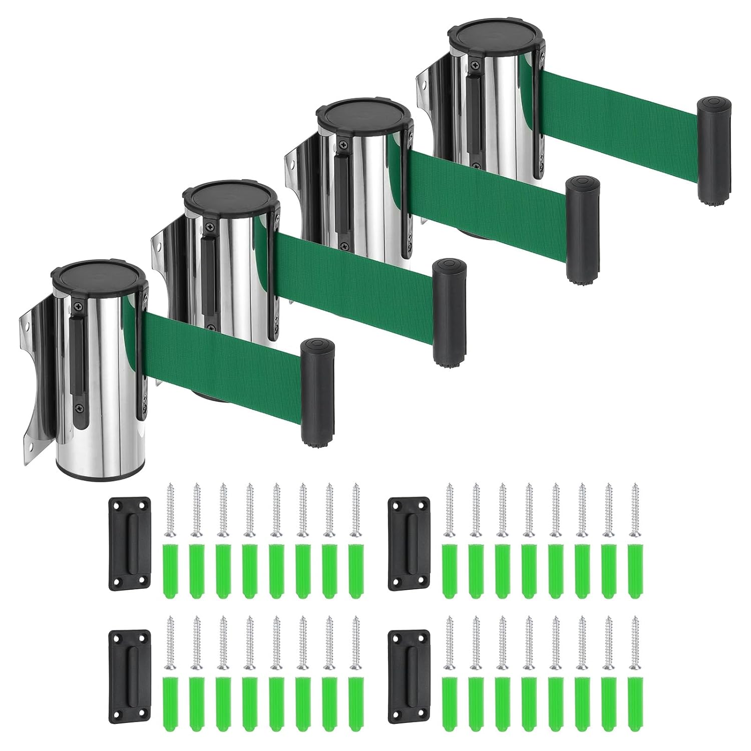 What is this?Our wall mounted retractable safety belt barrier is suitable for a variety of venues including stadiums, restaurants, festivals, hotels, grocery stores, offices, warehouses, concerts, movie theaters, and sports venues, helps maintain order, isolate sites, divide scopes, and guide routes, serving as an indispensable crowd management tool.What will I get?The fixed retractable belt barrier we provide here is the belt length: 3 Meters / 9.84 Feet, belt width: 4.8 cm/ 1.9 Inch, mounting plate size: 11 x 11 cm/ 4.3 x 4.3 Inch(L*W), total size: 13.2 x 7.5 cm / 5.2 x 3 Inch(L*W)In the package of: 4 x Belt BarrierAre there any advantages of the product?PROFESSIONAL BELT BARRIER: Made of a durable stainless steel shell, can be applied in any weather conditions. The flexible yet robust straps allow you to customize the barrier to suit your specific needs, while conspicuous color provides a good visual warning for attention.FIXED WALL MOUNT DESIGN: Quick and easy installation with included accessories, no extra brackets needed, saving space. The lock design prevents the belt from detaching accidentally, ensuring stability and security.How to use it?Easy Assembly: Directly drive the expansion screw into the wall, then fixed the belt barrier with the screw. Easy to use, no effort is required to hang the strap on the slot.What should I notice?Please check the size before purchasing.Whether you need to set up a VIP area, control access to a specific area, or manage the flow of people, our retractable belt barrier provide a great solution to create an effective crowd control system.