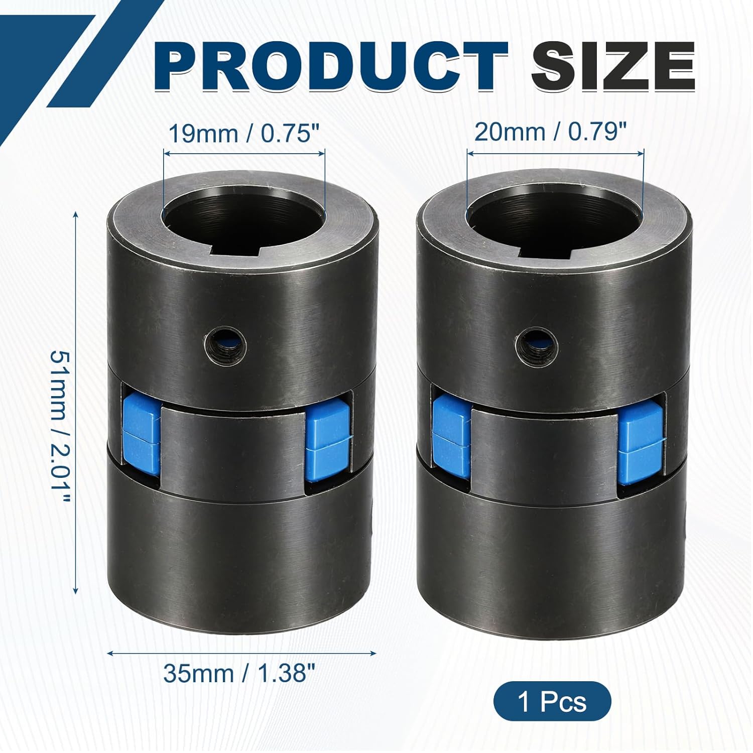 What is this?This L-type claw coupling assembly features a simple structure, easy installation, and excellent parallel performance, making it suitable for high-speed applications. It is commonly used in automated equipment such as machine tools, stepper motors, servo systems, motors, guide rails, lead screws, and spindle drives.What will I get?Color: BlackMaterial: Iron and Nitrile RubberSize: 51 x 35 mm / 2.01 x 1.38 inch(L x Dia.)Inner Diameter: 19mm to 20mm / 0.75 inch to 0.79 inchPackage Content: 1 Pcs x Flexible Coupling Coupler SetAre there any advantages of the product?1. Rugged construction: Made of iron and nitrile rubber, it offers oil resistance, corrosion resistance, shock absorption, cushioning, and electrical insulation, as well as significant radial and angular. The cross shaft has good flexibility and shock absorption.2. Torque Transmission Performance: The flexible spider frame effectively balances for misalignment between shafts and absorbs vibration and shock loads, maintaining high torque capacity during continuous operation and withstanding shock loads without damage. Excellent damping and vibration suppression reduce noise and wear.How to use?Versatile and easy to install, it is widely used in mechanical and automation applications. Seamless integration and easy adjustment are achieved for optimal performance.What should I notice?Regularly inspect L-claw coupling components for signs of wear or damage. Replace components as necessary to maintain optimal performance.