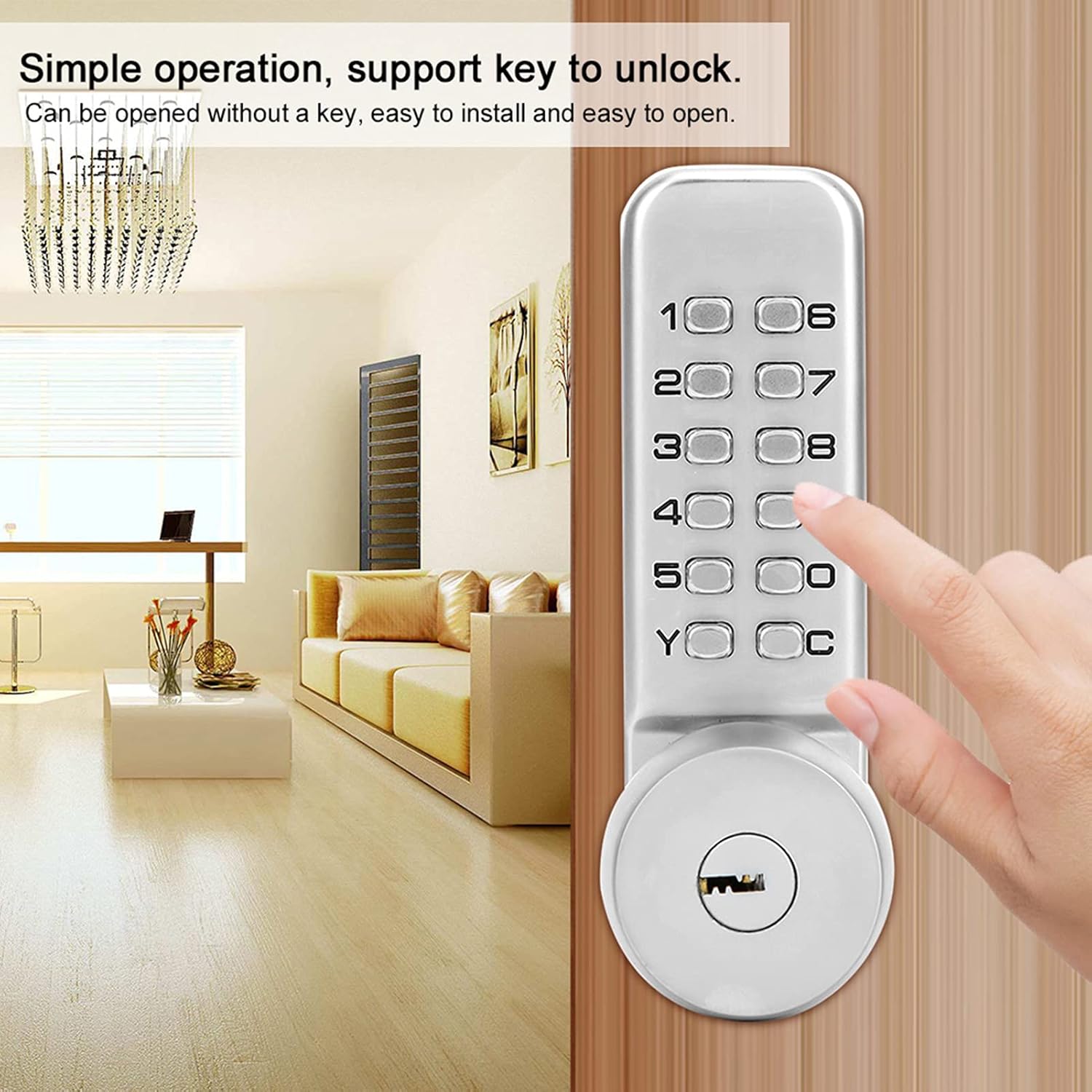 Features: 1. Mechanical door lock, granular key, sensitive key code, strong hand feel, easy , support key to unlock. 2. Compared with traditional mechanical locks, this lock can be unlocked without a key, easy to install and easy to open. 3. Made of zinc alloy material, which is sturdy, accurate, safe and . 4. 1-11 digit combination lock for furniture cabinet. The recommended password is set to 4-6 digits. 5. Password can be entered in any order. For example, 1234 can be entered as 4321 or 1342 or in any order. Specification: Condition: Brand New Item Type: Mechanical Door Lock Panel Material: Zinc Alloy Lock Body Material: Steel + Zinc Color: Silver Applicable Door Thickness: Approx. 10mm 30-60mm/1.2-2.4in Applicable Type: Indoor, Outside Door Password Length: 1-11 digits Lock Tongue Center Distance: Standard 60mm/2.4in Features: No battery power required Package List: 1 x Panel 1 x Lock Body 1 x Card Slot 1 x Lock Card 1 Pack Installation Accessories 2 x Rubber Lock Stickers 2 x Keys 1 x Instructions 1 x Bolt Sent at random, please make sure you don't mind before ordering.