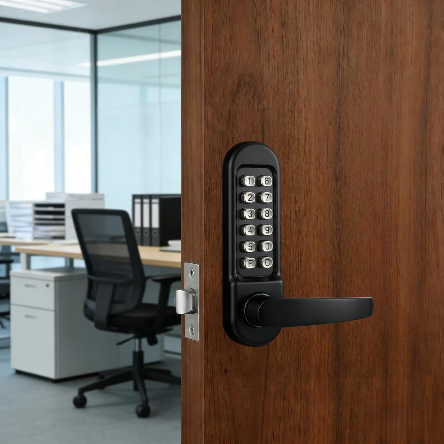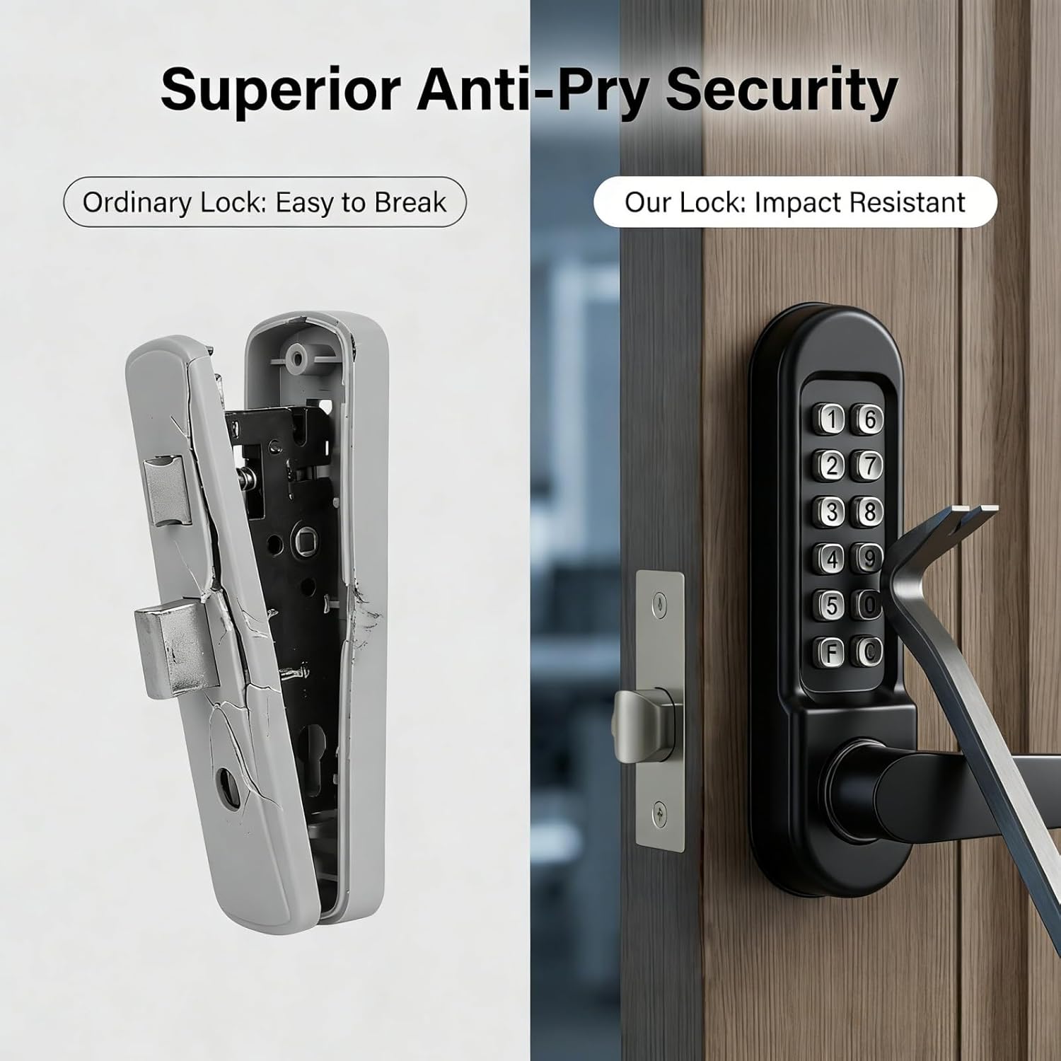 Upgrade your door security and convenience with our Mechanical Keyless Entry Door Lock. This lock is designed to provide a hassle - free and secure way to access your space without the need for traditional keys. Constructed from premium zinc alloy, this door lock is built to withstand daily use and various environmental conditions. The zinc alloy material offers excellent durability, resisting corrosion and wear, ensuring that the lock maintains its functionality and appearance for an extended period. Whether it's exposed to moisture, temperature changes, or frequent handling, this lock is up to the task. The keyless entry system operates via a 14 - button keypad, making it easy to enter your access code. The inclusion of a reset button (C key) simplifies code management. You can quickly and effortlessly change the access code whenever you want, enhancing security by preventing unauthorized access. This is especially useful if you need to provide access to different individuals or if you simply want to update your code for added peace of mind. One of the standout features of this lock is the passage function. With this function, you can keep the door unlocked, allowing for smooth and convenient passage. It's perfect for situations like hosting parties, when family members are moving in and out frequently, or for any time you need easy access without having to enter a code repeatedly. Available in two stylish color options - full black and satin chrome - this lock not only offers practicality but also adds a touch of elegance to your door. The full black finish provides a sleek and modern look, while the satin chrome finish offers a more classic and refined appearance. You can select the color that complements your door and overall decor, enhancing the aesthetic appeal of your space.