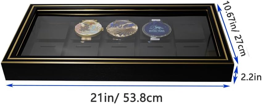 Specifications: Size: 21 × 10.67 × 2.2 in Material: Wooden and acrylic Package Included: 1x Medal Display Frame 1 set of install accessories