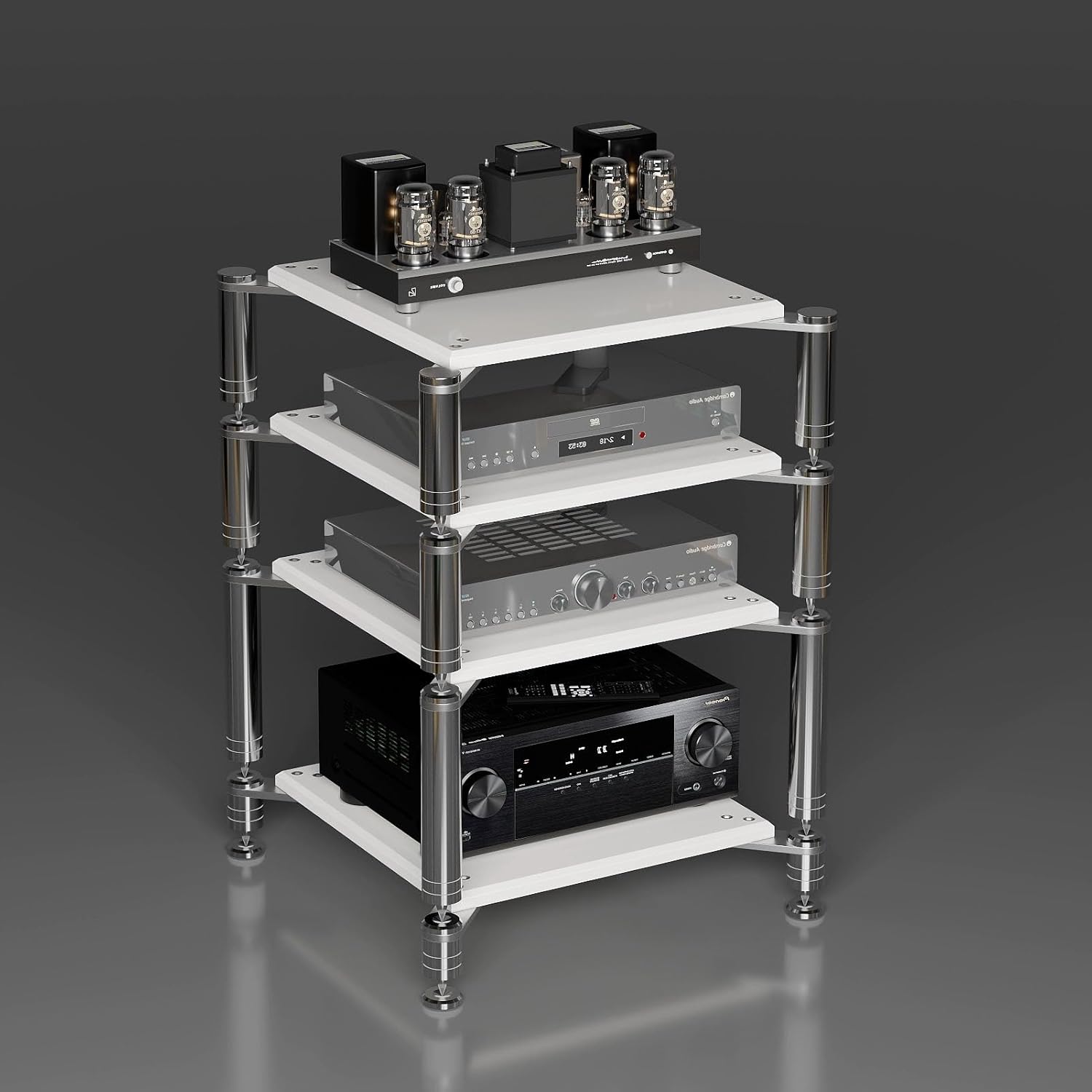 HOLGVE Perfect for corners or spare spaces, not only as a versatile storage solution for your home theater, but also as a side shelf for your office, living room or bedroomLarge capacity audio storage media cabinet effectively utilizes vertical space, not only serving as a multifunctional storage solution for home cinemas, but also serving as a side media shelf for offices, family living rooms, and bedrooms. It is also a perfect match for wall mounted TVName: Printer Stand/Storage Shelf/TV Stand/Stereo Cabinet/AV Media Stand/Video Media Stand/Media Storage Cabinet/Audio RackName: Media StandMaterial: Wood, SteelNumber of layer: 1 tier, 2 tiers, 3 tiers, 4 tiersAssembled or not: YesFurniture structure: Frame Structure1 tier Size: 59 × 59 × 11 CM / 23.2 × 23.2 × 4.3 inch,2 tier Size: 59 × 59 × 41 CM / 23.2 × 23.2 × 16.1 inch,3 tier Size: 59 × 59 × 61 CM / 23.2 × 23.2 × 24 inch,4 tier Size: 59 × 59 × 80 CM / 23.2 × 23.2 × 31.4 inch,Package Includes:1 x Audio RackNote:1. We are manually measuring, there may be an error of 3 - 5 cm, please prevail in kind;2. The color may exist a slight difference due to different screen displays;3. There are only storage rack, other products are shooting props;