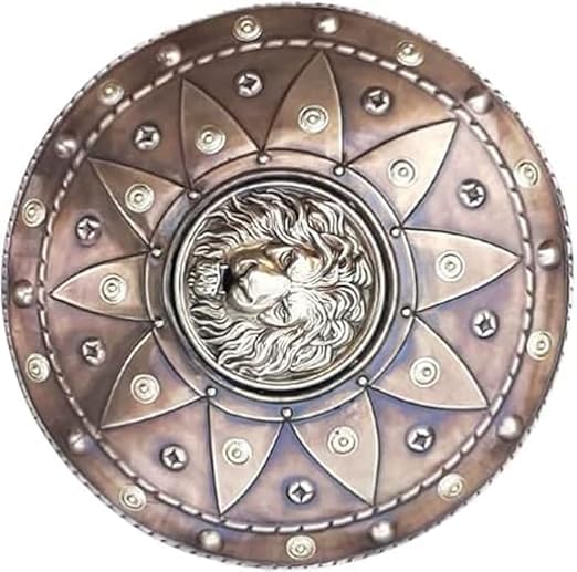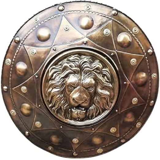 Medieval Lion Face Shield. Crafted with attention to detail, this round Spartan shield is perfect for SCA (Society for Creative Anachronism