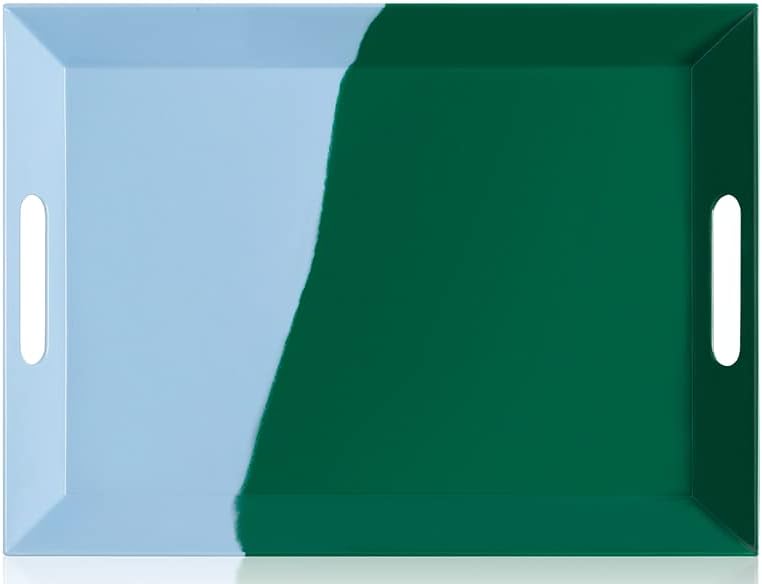 One of the standouts in Thomas Fuchs’ exclusive 1/2 & 1/2 collection, this food table tray caters to every season and any occasion. Add a pop of festive colors onto your tabletops and picnic mats. And celebrate every moment indoors or outdoors. Our food trays for serving are created with stunning, artistically chosen color combinations. Each modern coffee tray complements any design aesthetic you have at home or your patio. It can instantaneously make everything around you look and feel pulled-together. Their material, melamine, is a hard plastic. More specifically, it’s a compound that’s friendly to the environment. A combination of melamine resin and other strengthening materials, it can withstand rigorous use. These melamine trays for eating with handles are ideal for parties, barbecues, and poolside entertaining. Perfectly structured with a sizable flat surface, they can hold lots of food. Also great for everyday use, they have slanted edges on all 4 sides to help keep food and drinks from spilling out. Use our decorative serving trays as your serving tray, food trays for eating on bed, eating trays for living room, coffee table trays for living room, outdoor serving tray, condiment tray, appetizer serving tray, cheese serving tray, snack serving tray, taco serving tray, or pizza serving tray. Check out our other melamine dinnerware sets. Coordinate them with the other pieces from our 1/2 & 1/2 collection.