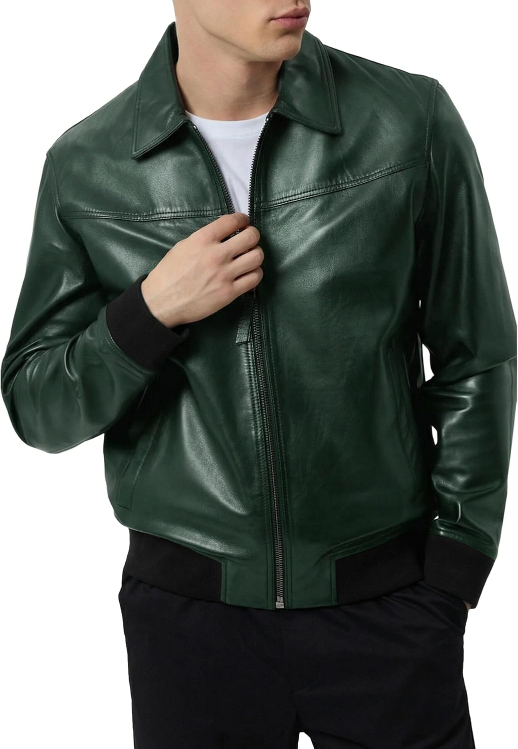 Mens 100% Real Lambskin Leather Bomber Jacket - Premium Shirt Collar Style Bomber Leather Jackets for MenExperience Sleek Sophistication with Our Mens Real Lambskin Bomber Leather Jacket Men Designed for Modern Versatility and Timeless Appeal. Crafted from 100% Genuine Lambskin Leather, This Leather Bomber Jacket Men Offers Unmatched Softness, Durability, and a Premium Feel. It Features a Smart Shirt-Style Collar, Ribbed Cuffs, and a Straight Hem for a Clean, Contemporary Look. the Smooth Front Zip Closure Adds Convenience, While the Functional Design Includes Two Outer Waist Pockets and Two Spacious Inner Pockets to Securely Carry Essentials. Fully Lined with Soft Polyester for Added Comfort, This Lambskin Leather Jacket Combines Function and Fashion. Available in Classic Black and Rich Brown, It's the Perfect Outerwear for Casual or Dressy Occasions. Elevate Your Style with This Essential Wardrobe Piece. Please Refer to Our Size Chart to Find Your Best Fit.100% Real Lambskin Leather - Soft, Luxurious, and Built to Last.Modern Classic Design - Shirt-Style Collar with a Sleek Zip-Up Front.Functional Storage - Two Outer Pockets and Two Spacious Inner Pockets.Comfortable Lining - Fully Lined with Smooth Polyester for Added Comfort.Available in Two Colors - Choose from Timeless Black or Rich Brown.