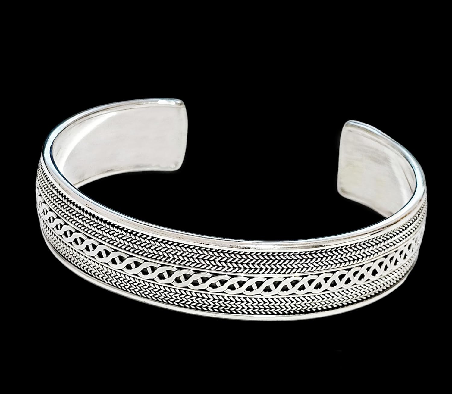 Make a bold statement with this Men's Silver Bangle Bracelet, expertly crafted from high-quality solid 925 sterling silver. Featuring a striking Celtic knots design, this bracelet is 16mm wide and weighs 31.5 grams, providing a substantial yet comfortable fit. The 925 silver hallmark ensures authenticity. Designed to fit most wrist sizes from small to large (18cm-22cm), it is easily adjustable with a gentle squeeze. Presented in a luxurious jewelry gift box, this bracelet is an ideal gift for him. Perfect for Christmas, anniversaries, Father's Day, Valentine's Day, and more. Key Features: High-Quality 925 Sterling Silver: Durable and polished for a sophisticated look. Celtic Knots Design: Adds a unique and bold style. Adjustable Fit: Fits wrist sizes from 18cm to 22cm with a simple squeeze. Gift-Ready: Comes in a beautiful jewelry gift box, perfect for special occasions. This elegant silver bangle is a versatile accessory, perfect for any man who appreciates fine craftsmanship and timeless style.