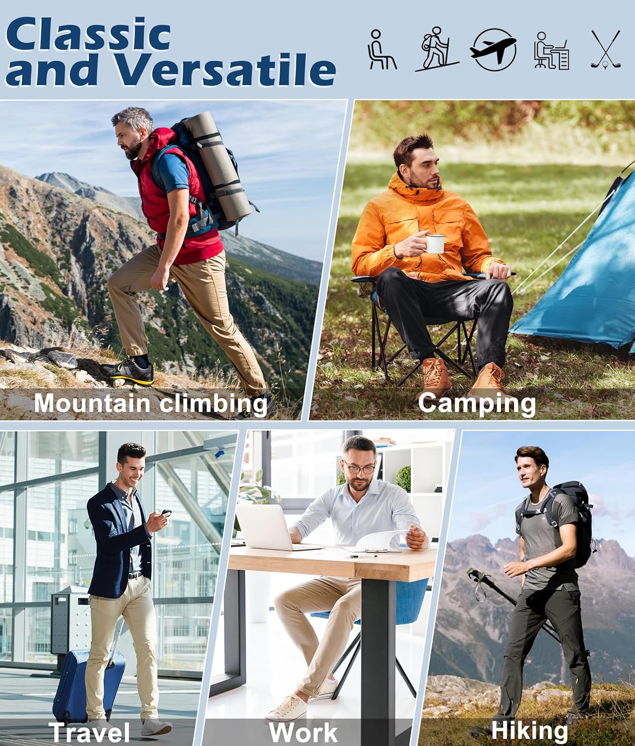 Mens Hiking Pants Waterproof Cargo Work Pants Lightweight Nylon Quick Dry Outdoor Travel Pants 6 Pockets