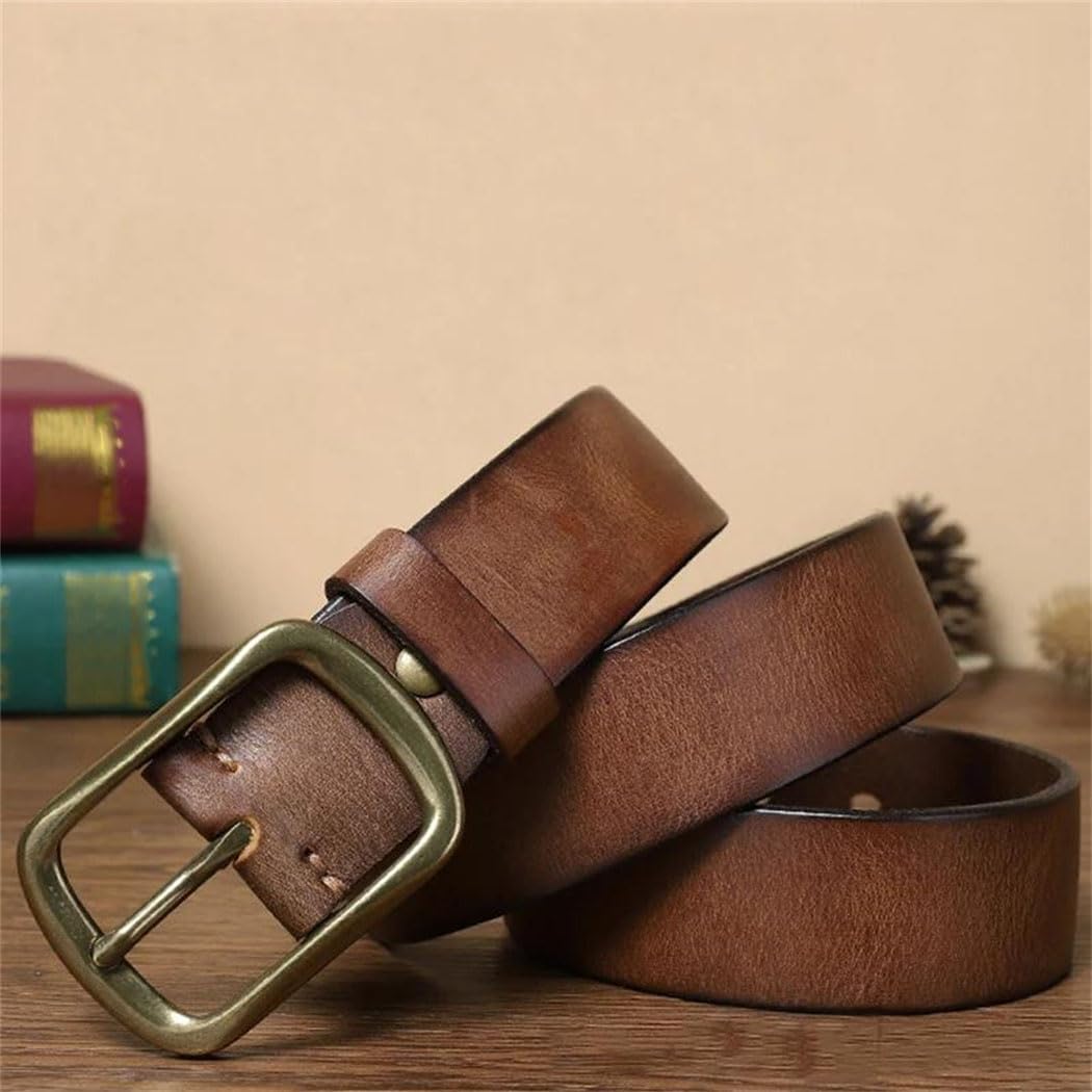 Belts Material:CowskinBelt Buckle Material:CopperMaterial:Genuine LeatherBelt Width:3.8CmPattern Type:SolidStyle:FashionDepartment Name:AdultGender:MenItem Type:BeltsWidth:3.8CmProduct Category:BeltTexture Technique:Distressed ColorApplicable Scenarios:WorkplaceApplicable Gender:MaleLeather Characteristics:First Layer CowhideYear Of Listing/Season:Spring 2025Suitable For Seasons:Summer, Winter, Spring, AutumnFastening Method:Pin BuckleStyle:Leisure