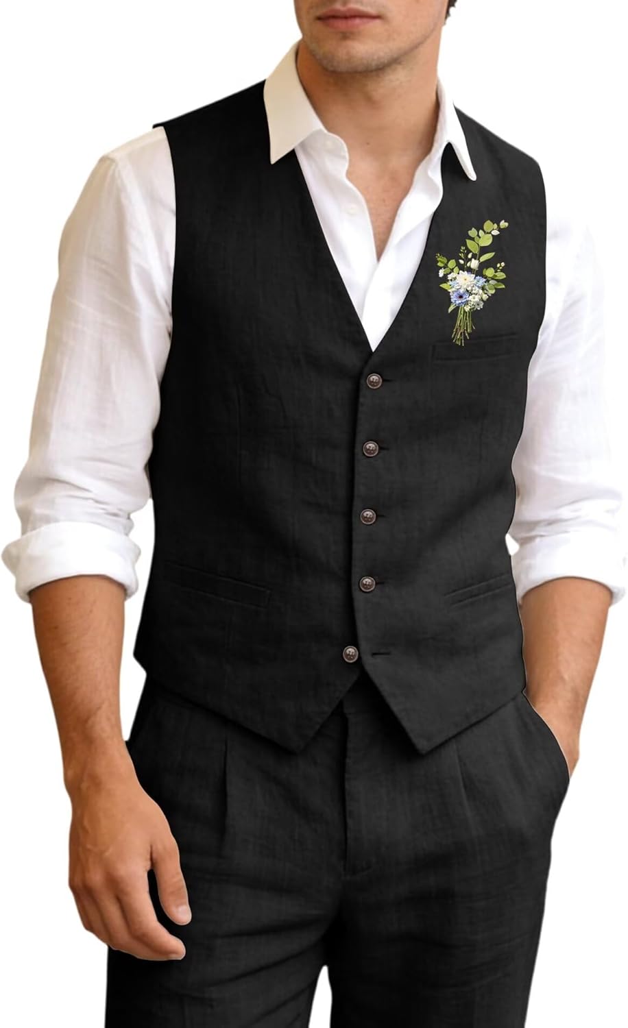 Package Included: 1*Vest 1*Pants Features: Fabric: 55% Linen, 45% Cotton, comfortable and breathable. Size: Please carefully read our Size Chart before ordering, ignore the Amazon's size. Multifunctional: Our men suit set is suitable for wedding, business meeting, graduation, party or daily wearing. Also a perfect gift for boyfriend/husband/father,or other male friends.Match: Stylish and fashion design make you more attractive,Perfect match with your favorite suit jacket,tuxedos,shirt,etc Warm Tips: Wash gently at low temperature, steam ironing, hang up to avoid wrinkles. Notes: 1. Please choose a suitable size before ordering. If you are not sure about the size or have any special requests, please feel free to contact us. 2. There may be around 1-3cm size difference due to manual measurement. 3. The colors might look slightly different from the picture due to different cameras and monitor settings. 4. Some ties and buttons will not 100% the same as the picture shown, if you couldn't accept, please be careful to buy.