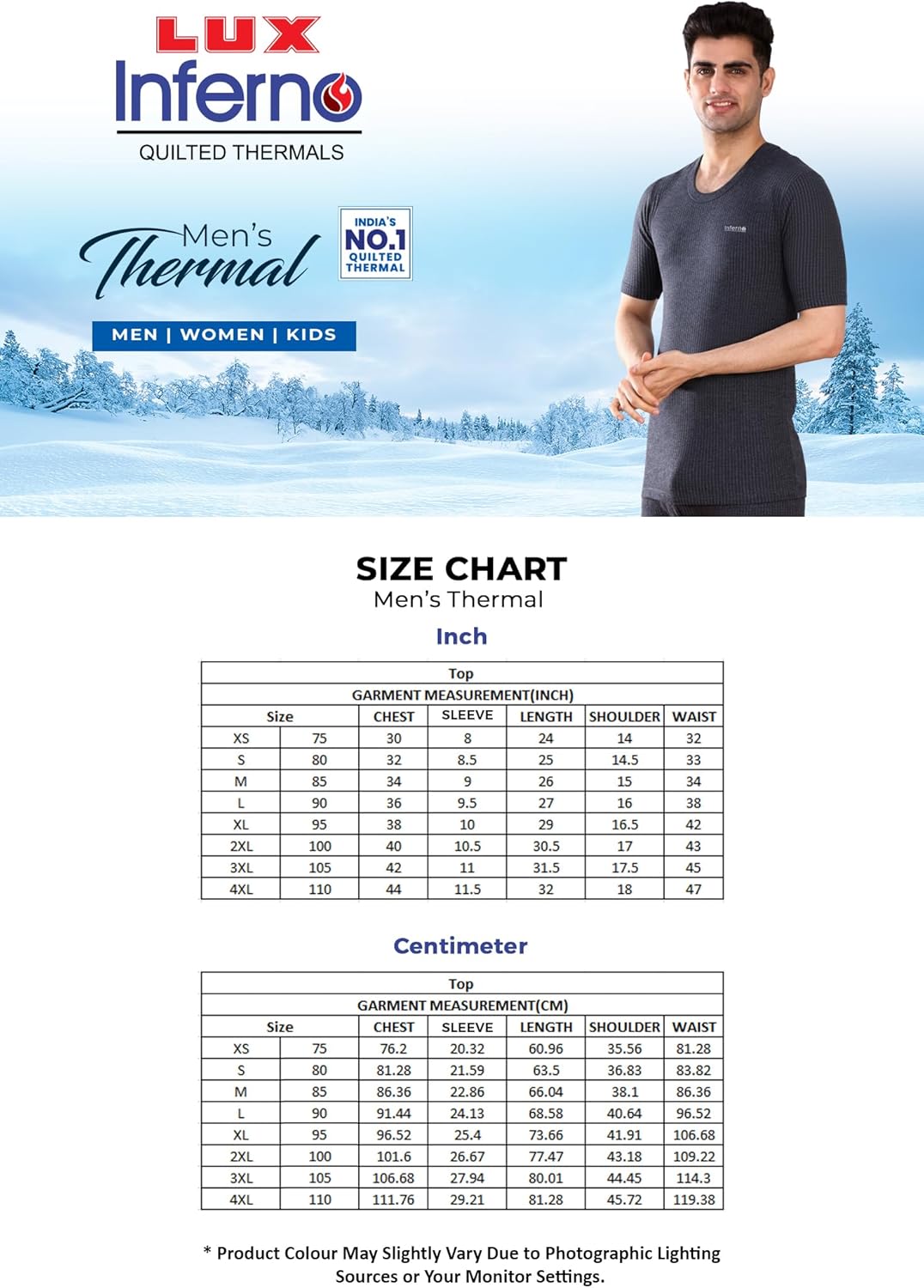Stay warm and comfortable with the Lux Inferno Men's Thermals, made from two layers of finely combed cotton and high-quality polyfill material for superior insulation and durability. Designed to retain body heat, it offers a comfortable, flexible fit that allows easy movement and layering. Perfect for indoor or outdoor use, this pull-on vest is quick to wear and ideal for daily winter wear. 28/1 GF,BT ROAD,KOLKATA-700002