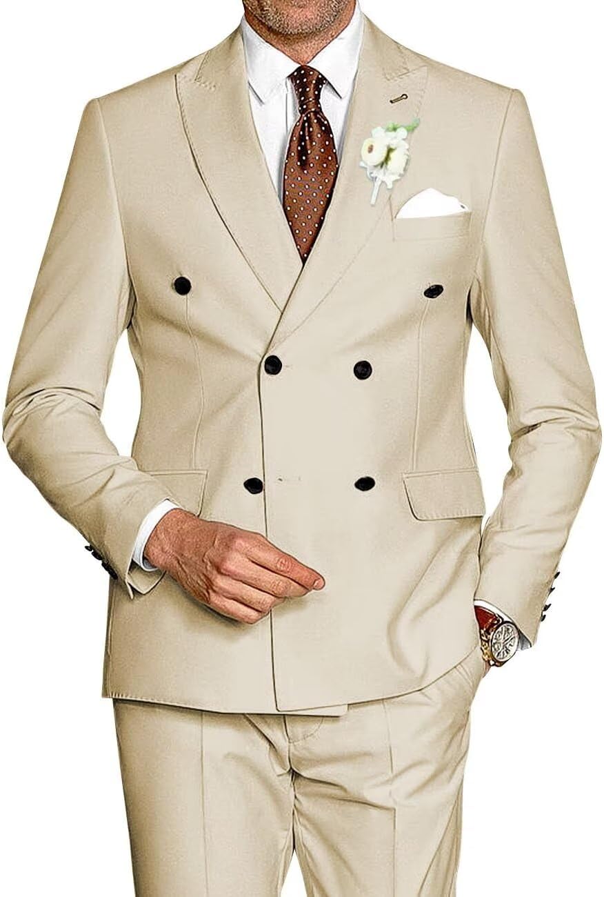 | Fabric Type | TIJOFA Suit Fabric:79% Polyester, 21% Viscose Champagne Mens Slim Fit Suits 2 Piece Double Breasted Suits for Men Wedding |
