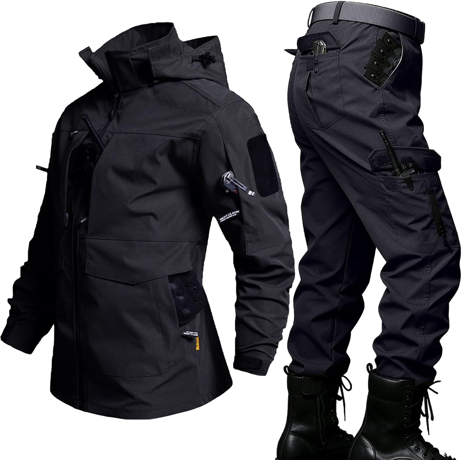 It's a purpose-built tactical system. The lightweight fabric ensures you stay agile without being weighed down by your own gear. Adaptable Protection: The detachable hood provides instant weather coverage when needed and stows away cleanly when it doesn’t. Low-Profile Storage: Multiple pockets—including bellows cargo pockets and discreet pockets—are designed to hold magazines, maps, tools, and personal items without bulking up your silhouette or snagging on equipment. Elastic waistband and wide crotch design allow for a full range of motion, whether you’re crouching, sprinting, or shouldering equipment.It seamlessly transitions between: Airsoft/Paintball: Durable, breathable, and functional for competitive mil-sim. Hunting & Fishing: Water-resistant, quiet, and comfortable for long days in a blind or by the water. Outdoor Work & Hiking: Tough enough for rugged jobsites or trail exploration. Training & Preparedness: Reliable as part of your emergency or survival gear.