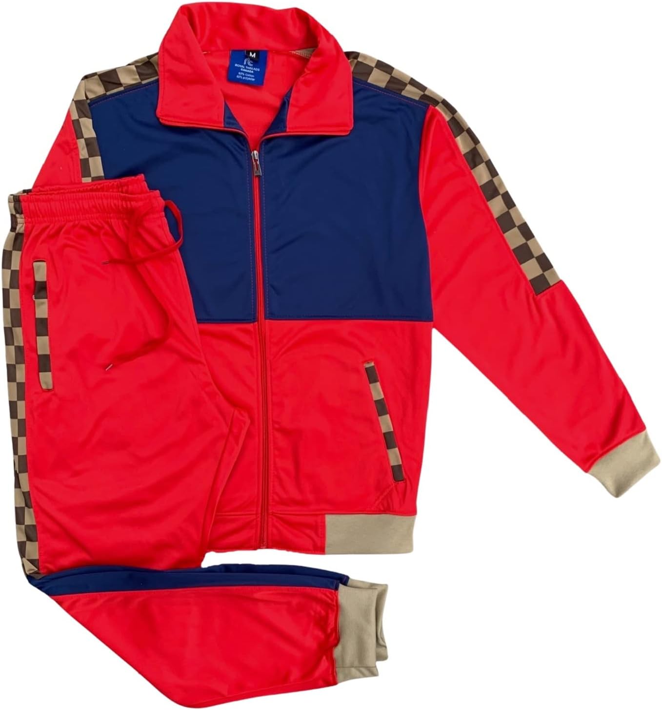 The men’s checker box style tracksuit is featured in a three color combination style. The checker box tracksuit style complements current fashion trends with a classy look. The 2-piece matching suit is ideal on the sports field, at the GYM or just casual weekend activities. The material is seamless comfortable and durable to last many seasons.