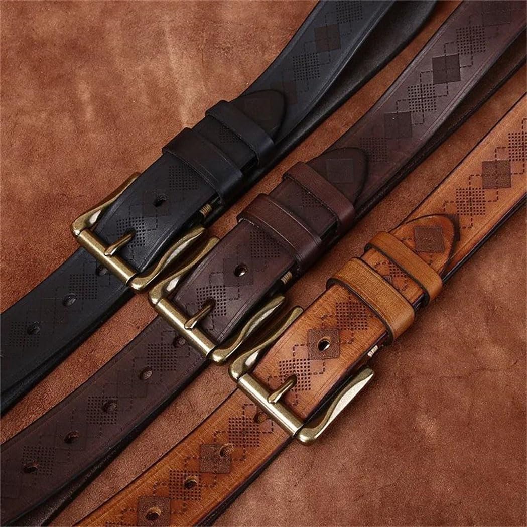Belts Material:CowskinBelt Buckle Material:CopperMaterial:Genuine LeatherBelt Width:3.8CmPattern Type:PrintStyle:CasualDepartment Name:AdultGender:MenItem Type:BeltsTreatment Process:Textured, Handmade, Embossed, Hand SewnWidth:3.8CmColor:Black Brown KhakiStyle Classification:Personality TrendCortical Features:First Layer CowhideBuckle Method:Pin BuckleLength (Cm):100Cm,105Cm,110Cm,115Cm,120Cm,125Cm,130Cm