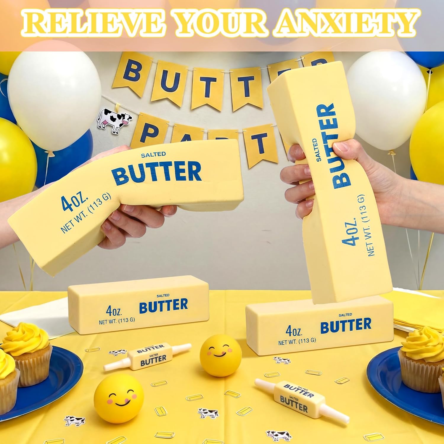 Features: Safe & Skin-Friendly: The non-toxic and odorless PU material ensures safe use. It has a smooth surface without sharp edges, preventing skin irritation during play. It is a perfect stress toy for students to release study pressure and for office workers to relax during busy hours. Cute Decor & Practical Gift Choice: With its realistic butter look and soft texture, the giant butter squeeze doubles as a cute desktop decor to add a fun touch to your space. It is also a thoughtful gift for family who suffer from stress, serving as a practical and interesting relaxation gift for holidays or birthdays. Specifications: Material: high-quality PU material Color: butter color Size: 9.45 x 2.76 x 2.76 inches/ 24 x 7 x 7 cm Package includes: 1× Oversized Butter Squeeze Notes: Manual measurement, please allow slight errors on size. The color may exist a slight difference due to different screen displays.