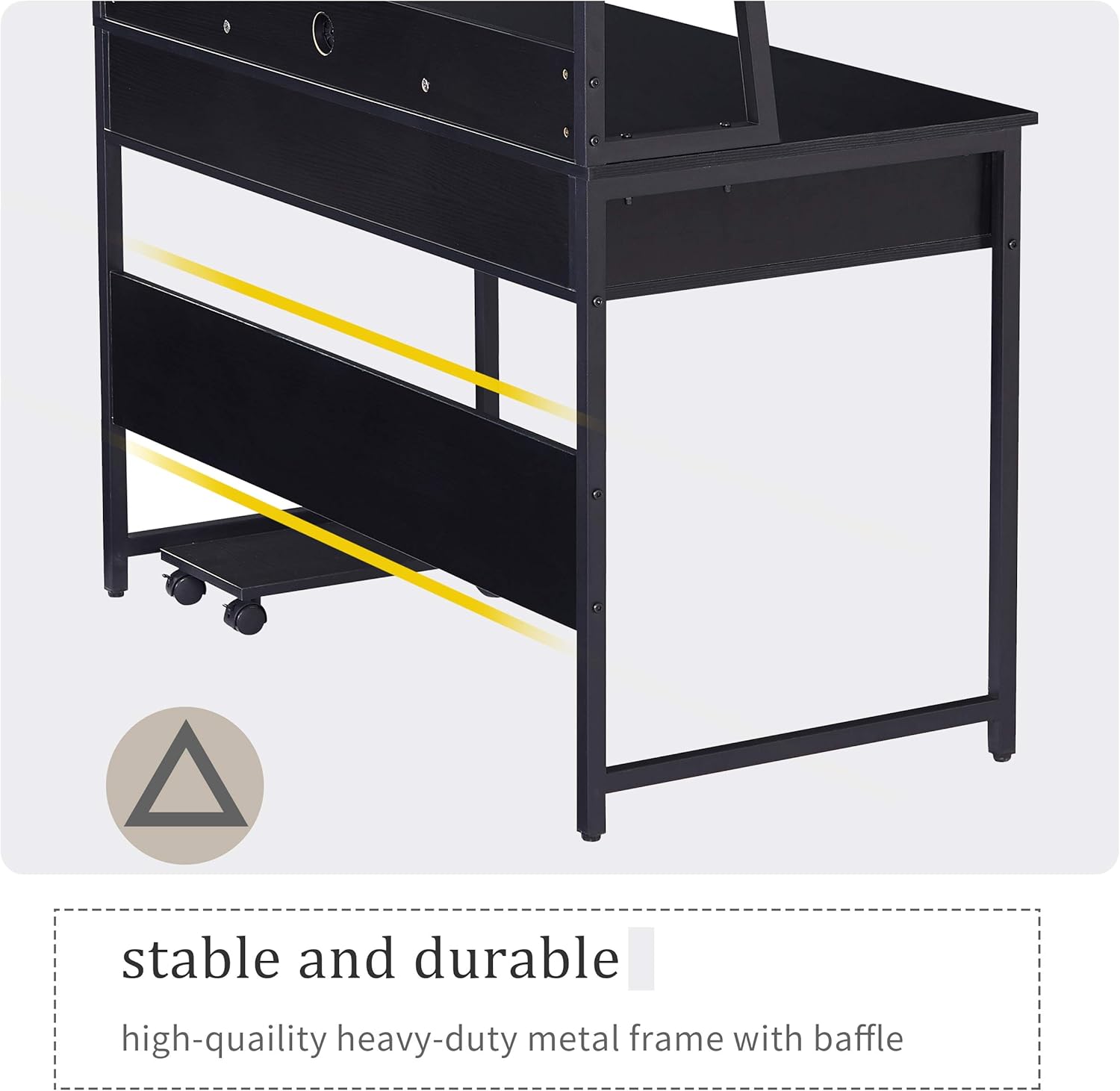 This extra large desk surface with high capacity makes it perfect fit for your laptop or desktop PC and all of your office accessories.Place your laptop on the desktop surface and still have room to work on your paperwork.