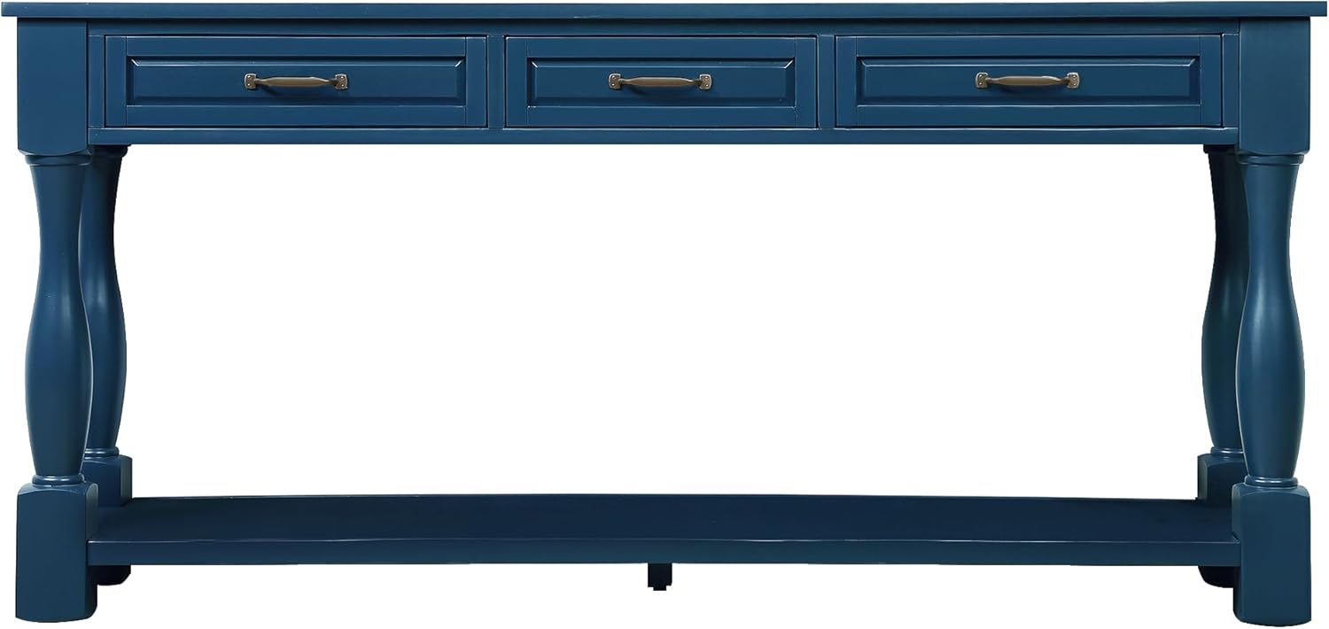 Dimensions & Weight Product Dimensions & Weigh: 63.38''x14.56''x30''; 61.73LB Package Dimensions & Weight: 66.93''x17.32''x13.19''; 70.55LB Drawer Internal Dimension: 13.6"L x 9.7"W x 2.8"H Weight Capacity Tabletop: 220 LBS Bottom Shelf: 66 LBS Single Drawer: 17 LBS Specifications Product Name: Console Table Material Pine wood frame and legs+ MDF panels Finish: Painting Assembly Required: 20min Additional Tools Required: All tools included Pieces Included: One Package Number: 1 Care & Maintance 1.Wipe with a soft dry cloth. Avoid the use of harsh chemicals and household cleaners as they may damage the finish. 2.Hardware may loosen over time; periodically check that all connections are tight. Notice 1. Real Product's Color may be a little different from the image due to the lighting or monitor's display. 2. Manual measurement has been used, there may be some reasonable error.