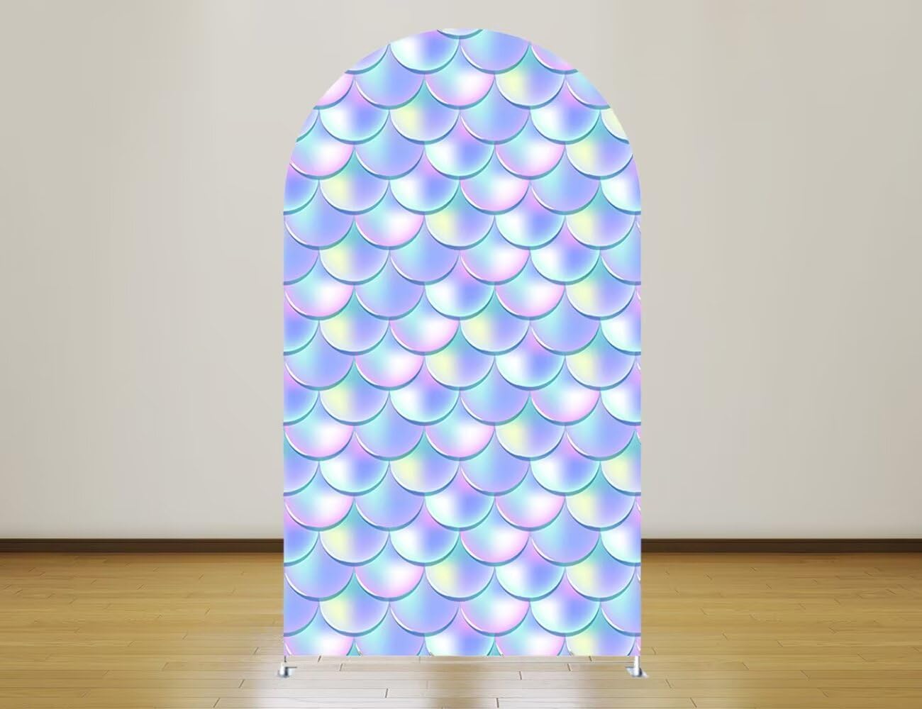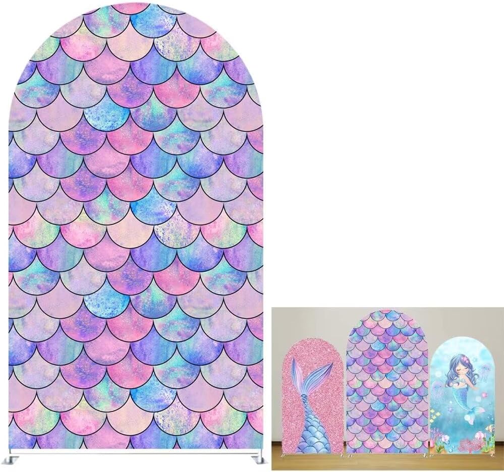 Introducing the stunning Mermaid Arch Backdrop Cover - the perfect addition to your party decorations collection! This fantastic arched wall cover is perfect for girls' birthday parties, weddings, banquets and bridal showers, creating a beautiful and unforgettable atmosphere. Constructed from high-quality, double-sided stretchy material, this Mermaid Arch Backdrop Cover guarantees to fit perfectly around your chosen backdrop, creating an elegant and sophisticated setting for all of your guests. The exquisite detailing and vibrant color scheme will compliment any theme or color scheme you have chosen for your party decor. Whether you're looking for a background for a photo booth, a photobooth backdrop, a cake table backdrop or simply to add some pizzazz to your party, the Mermaid Arch Backdrop Cover is a great choice! Its versatile design means that it's suitable for both indoor and outdoor use. So if you're looking for high-quality, arched wall covers that can bring some sparkle and glamour to your event or party, look no further than the Mermaid Arch Backdrop Cover. Add it to your shopping cart today and elevate your party decorations to the next level!