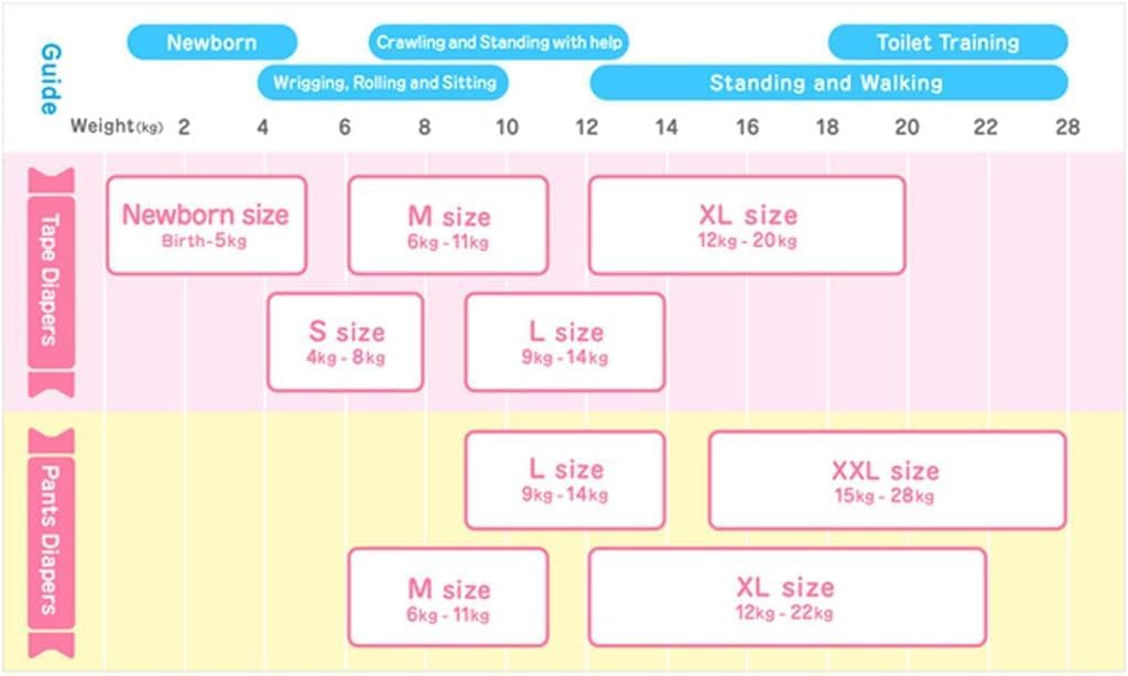 INSPIRED "Merries" comes from the English word "merry", which means cheerful and smiley. It is also inspired by the musical merry-go-round mobile hung above babies cribs designed to bring smiles to babies and parents every day.. Merries wants babies to be happy, comfortable, and smiling. We believe that joyful moments between parents and babies create positive bonding experiences during early childhood. Merries will constantly innovate to help parents enjoy their child-raising years and ensure that their babies live as happily and comfortably as possible.FEATURES:NEW TECHNOLOGY! Newly mounted on the center part's volume-absorbent zone!Super absorbent, highly breathable, and ultra-soft so your active baby stays dry and comfortable! Instantly draws in and locks away pee, leaving the diaper surface drier for longer usage!The polymers in Merries diapers can absorb up to 200 - 300 times the weight of fluid relative to its weight. You can have peace of mind even on mornings when your baby has peed a lot overnight! The wavy surface traps and holds poo! The recessed areas of the soft sheet effectively trap the soft poo and prevent it from dispersing. Block leakage with double gathers! 3D side gather prevents side leakage. Back gathers for a snug fit help avoid leakage for S, M, L, and XL sizes. . When the strips change color to dark blue, it is time to change the diaper! There's no design around the strips, making it easy to see when the color changes. The corners are rounded and made of a soft material that is gentle and does not scratch the baby's skin. And the reusable seal is so convenient!Gathers around the legs. Fits perfectly around baby's legs!Fit snugly in all positions, stretch gently around your baby's waist.Designed to minimize pressure around sensitive areas for added comfort.