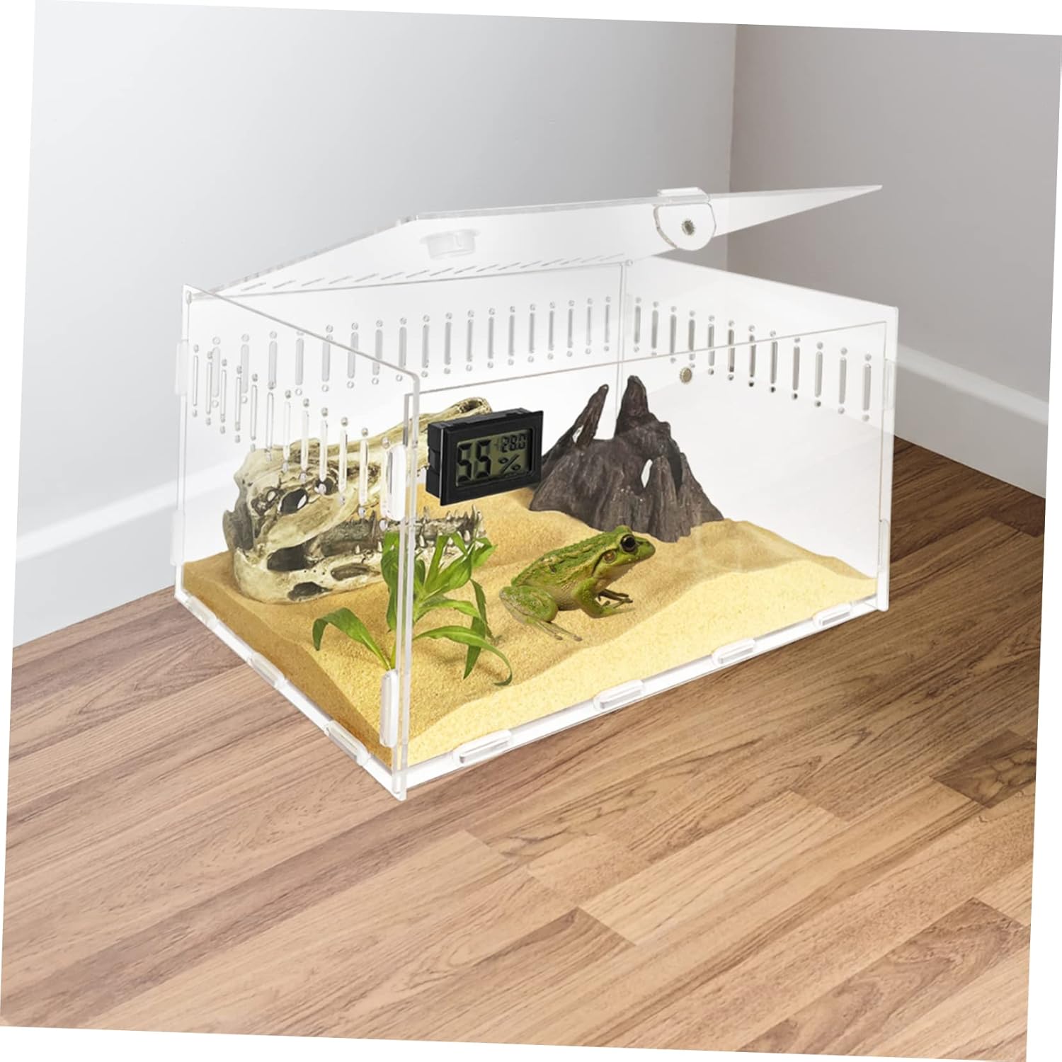 Package Include 1 x Reptile Breeding Box Characteristics -Product Info:Reptile feeding box -Size:30.00X20.00X15.00cm/11.79X7.86X5.89in lizard cage -Material:Acrylic transparent reptile breeding case -Color:Transparent household reptile cage -Note: It comes with humidity temperature meter reptile cage. - Its good light transmission can observe the trend of pets playing at any time plastic reptile carrier. - The ventilation holes keep fresh air flow into the habitat, which are good for your lovely pet growth portable reptile cage. - Acrylic , safe and no strange smell, transparent design, see the inside clearly clear reptile cage. - Perfect for domestic pets, transporting animals or , such as small pets such as spiders, geckos, snakes, etc reptile container. - Transparent material with good weather resistance, surface gloss and good temperature performance reptile cages.Goods Descriptionportable reptile cage The transparent case is sanitary and animals friendly and can be re-used.reptile cage Made of acrylic material, practical and durable.transparent reptile breeding case Suitable for snakes, tarantulas, , geckos, crickets, snails, crabs, frogs, lizards, tortoise and other reptile animals