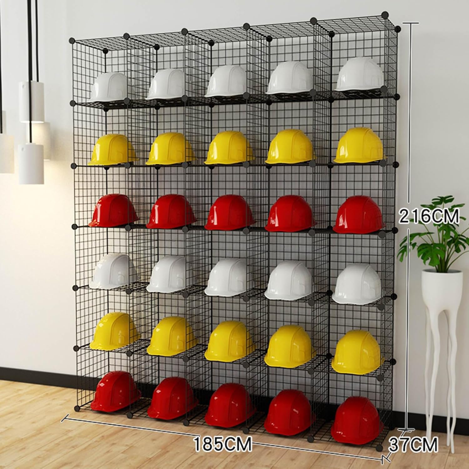 The Wire Cube Storage Organizer is a versatile shelving solution that seamlessly blends style and functionality. Perfect for any room in your home, this organizer can be used in the hallway to keep shoes neatly stored, displayed in the living room for books and plants, or utilized in the bedroom for clothing and accessories. Its DIY design empowers you to unleash your creativity, allowing you to customize the layout to suit your unique space. Crafted from durable iron and ABS, this storage organizer is built to last. Available in various sizes, including 39x37x185cm with 5 grids, and larger configurations up to 187x37x185cm with 5 columns, you can select the perfect fit for your needs. Each cube has a bearing capacity of 20kg, ensuring you can store everything from helmets and books to sundries and industrial products without worry. Experience the benefits of open storage compartments that provide a clear view of your items, making it easy to access what you need. With a maximum load capacity of 30 lbs per cube, this organizer is both strong and reliable. Its stackable design not only saves space but also allows for endless customization, making it an ideal choice for anyone looking to enhance their storage solutions. Invest in the Wire Cube Storage Organizer today and transform your living space into an organized haven.