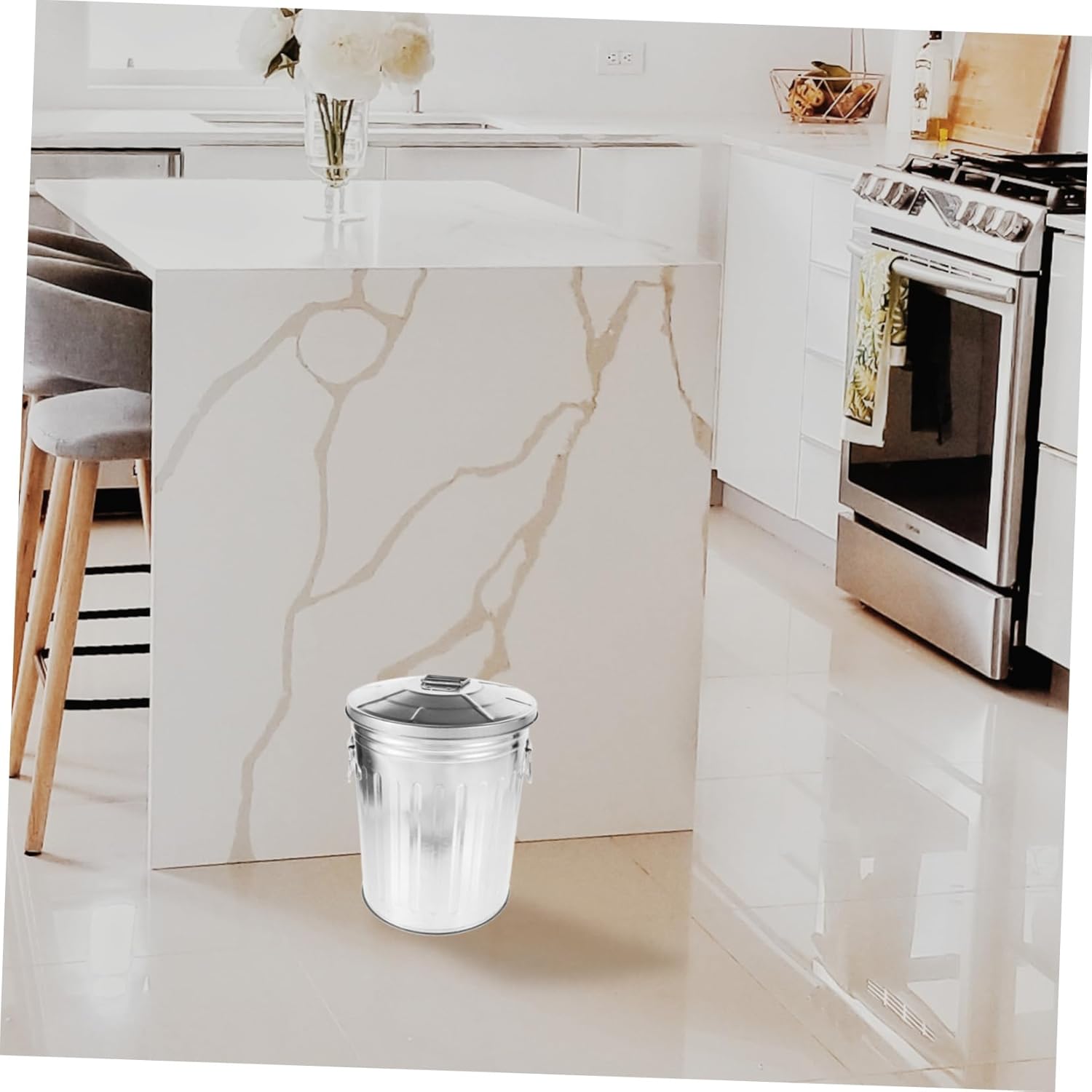 Package Include 1 x garbage can Features -Product Info:Metal trash can -Capacity:8L bathroom trash can with lid -Size:29.50X22.50X22.50cm/11.59X8.84X8.84in chrome round waste basket -Color:Silver garbage can outdoor -Material:Iron garbage can with lid vintage -This outdoor garbage can offers a sleek yet simplicity look, so it is very simple and convenience for everyday small round bucket with lid. -Sleek and modern design that complements any decor style, enhancing the overall aesthetic of your space outdoor trash. -Made of iron, the trash can is and sturdy, featuring simple texture, will complement your home decor decorative trash can kitchen. -Constructed with metal material for durability and corrosion resistance. Equipped with lid to prevent odor outside garbage bin. -Versatile metal trash can for home, kitchen, and outdoor use, this outdoor garbage can is very useful trash can with locking lid.Goods Descriptiongarbage bin with lid This outdoor garbage can is perfect for your room to avoid clutter and paper or leaving wrapping paper behind.galvanized trash can lid Simple and practical, take the garbage in your life and more convenience.outside decorative garbage can This garbage can is well constructed from a iron material