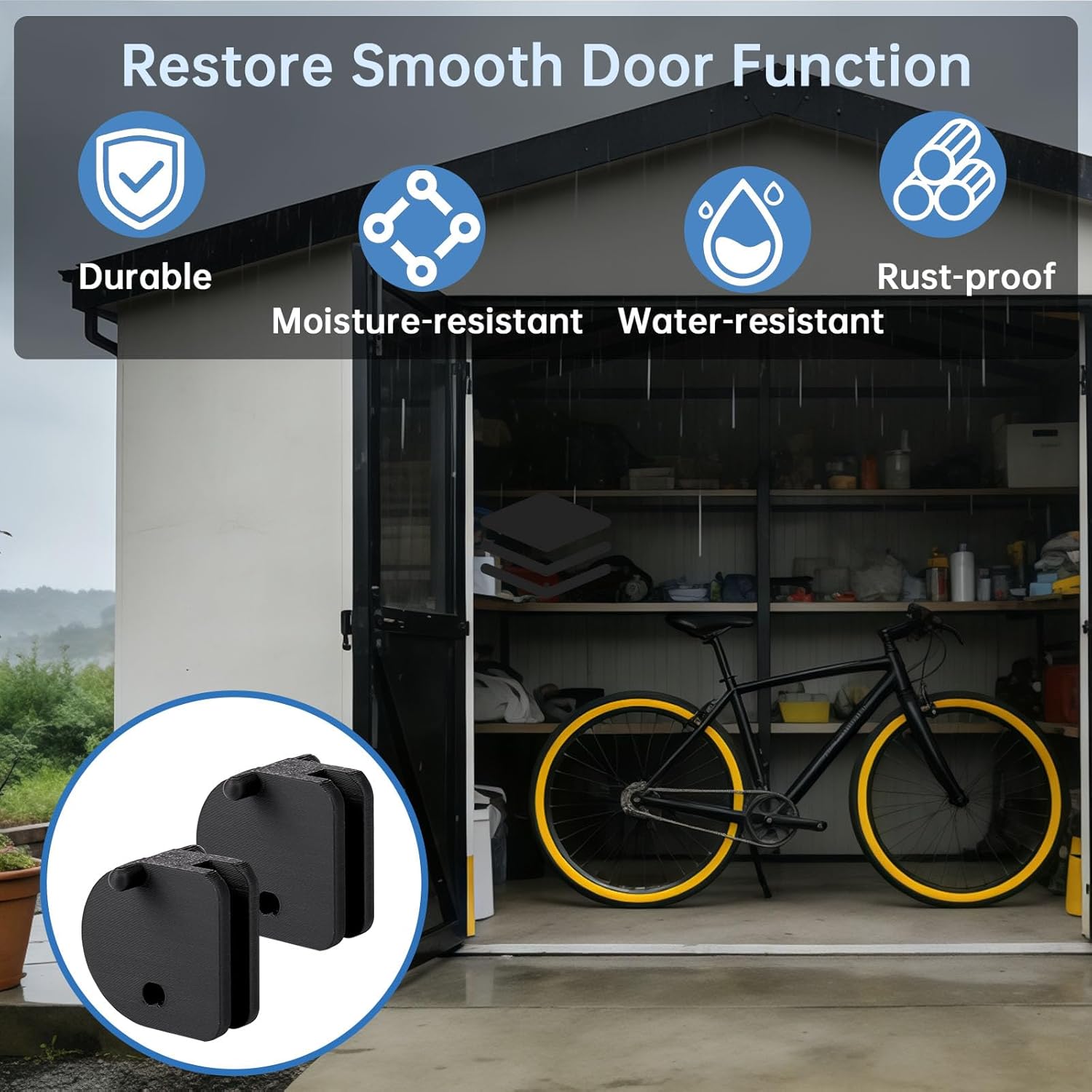 Restore smooth, effortless operation to your metal shed doors with this replacement slide kit. Designed specifically for Yardmaster Outsunny sheds, these door slides provide a durable, long‑lasting solution for doors that stick, jam, or have come off their tracks. Whether your original plastic guides have cracked or the metal rollers have worn down, this 2‑pack kit delivers a reliable repair that brings your shed back to like‑new function. Easy to install in minutes, this metal shed door glides 2-pack is the perfect repair solution to keep your outdoor storage secure and accessible. Upgrade your shed hardware for reliable performance every season. Includes two replacement door slides. Screws or mounting hardware are not included; reuse your original hardware if applicable.