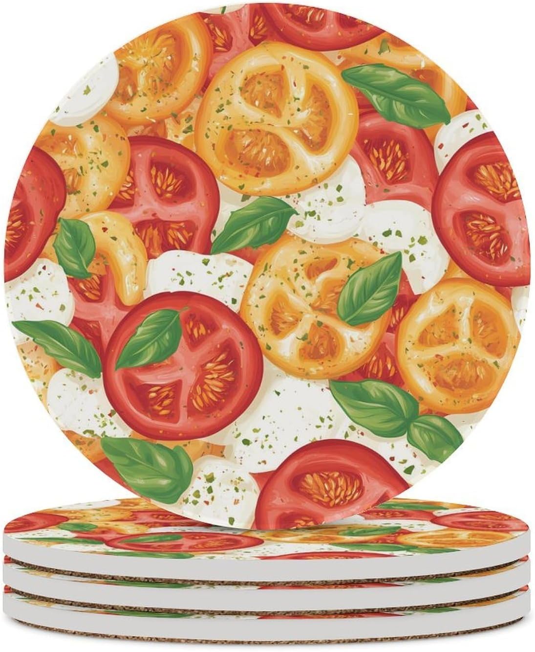 Cute Printed Round Drinks Absorbent Ceramic Coaster with Cork Base Suitable for Kinds of Mugs, Cups, Prevent Tabletop Wear And Scratches, and is Easy to Clean
