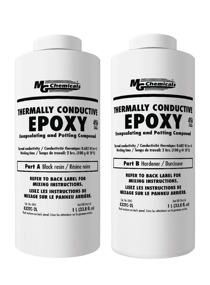 Thermally conductive epoxy encapsulating and potting compound. 100 Percent solids. Formulated with undiluted Bis F resin for superior physical properties, and pigmented with high purity aluminum oxide pigment to provide excellent thermal conductivity at reasonable cost. Pigmented black for excellent thermal absorption and emission. RoHS compliant.
