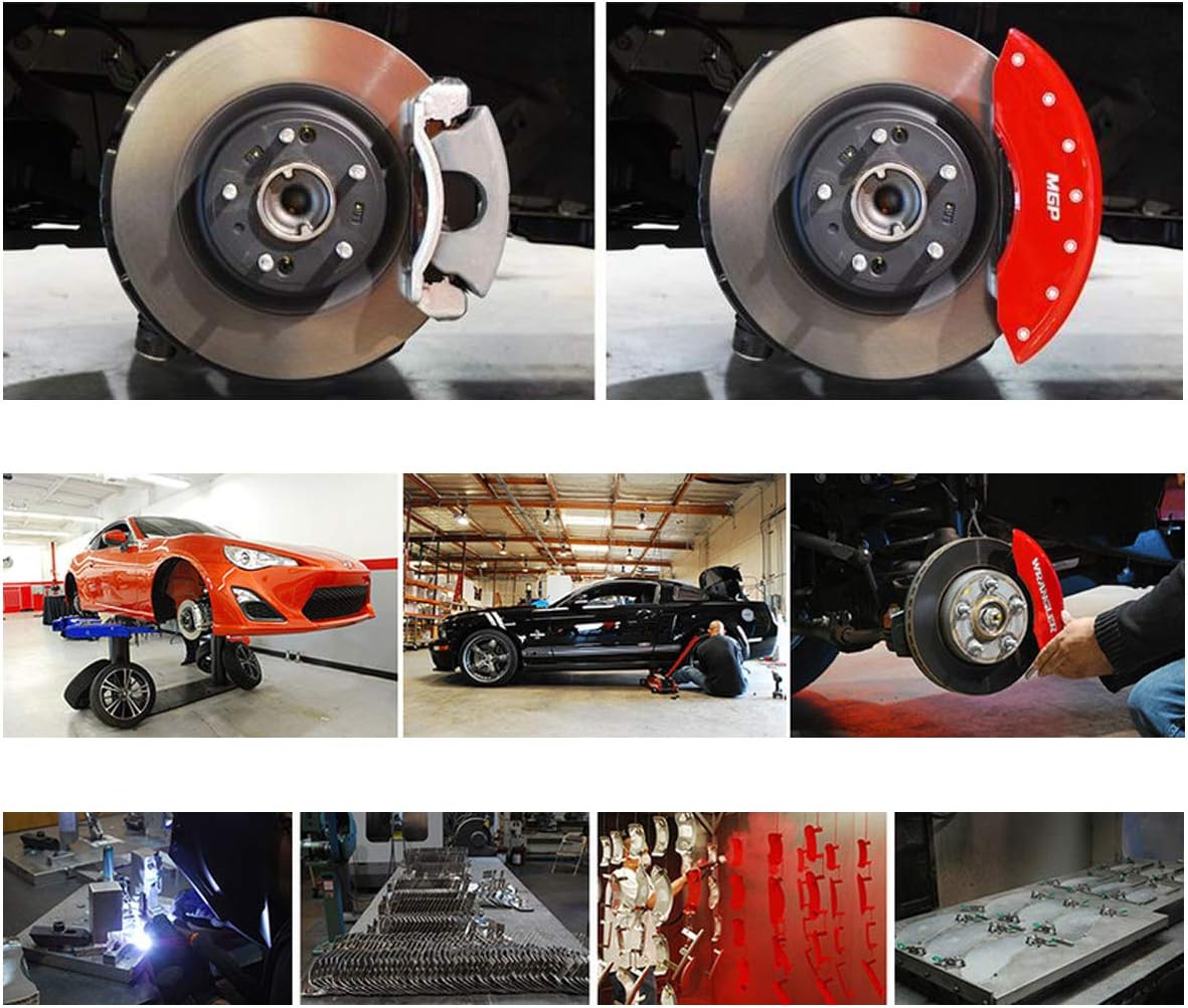 MGP Caliper Covers are manufactured in the USA with T-6061 aerospace grade aluminum, TIG welded for strength, powder-coated for durability, and includes a patented stainless steel fastening system. Each set is engineered specifically for the brake caliper to ensure proper fit and finish. No adhesives, tape, or caliper modifications are required. Typical installation time is one hour from start to finish.