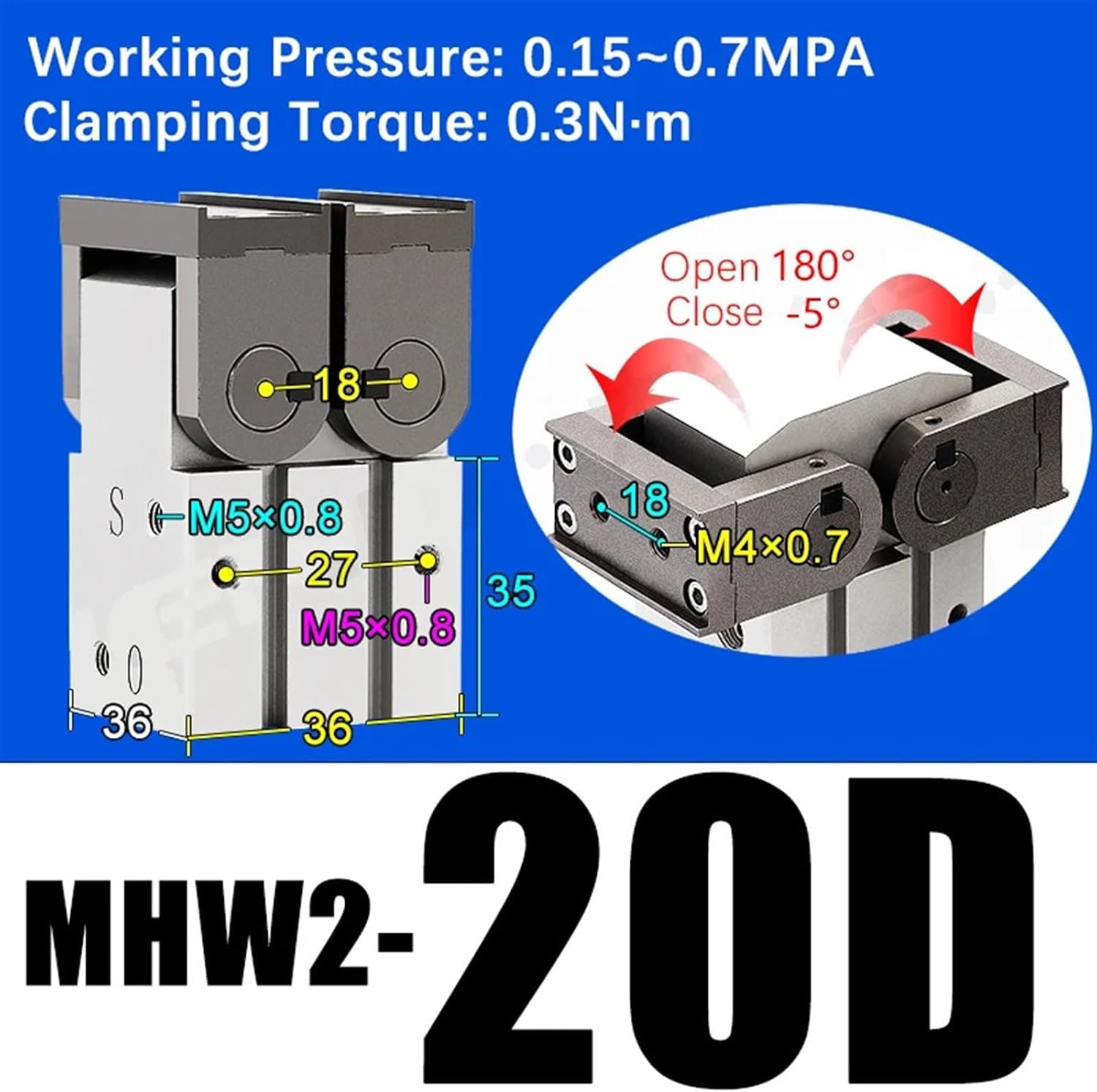 CylindersMHW2 Air Gripper 180° Angular Type Rack Pinion Type CylinderMHW2-20D/D1 MHW2-25D/D1 MHW2-25D MHW2-32D/D1 MHW2-40D/D1 MHW2-50D