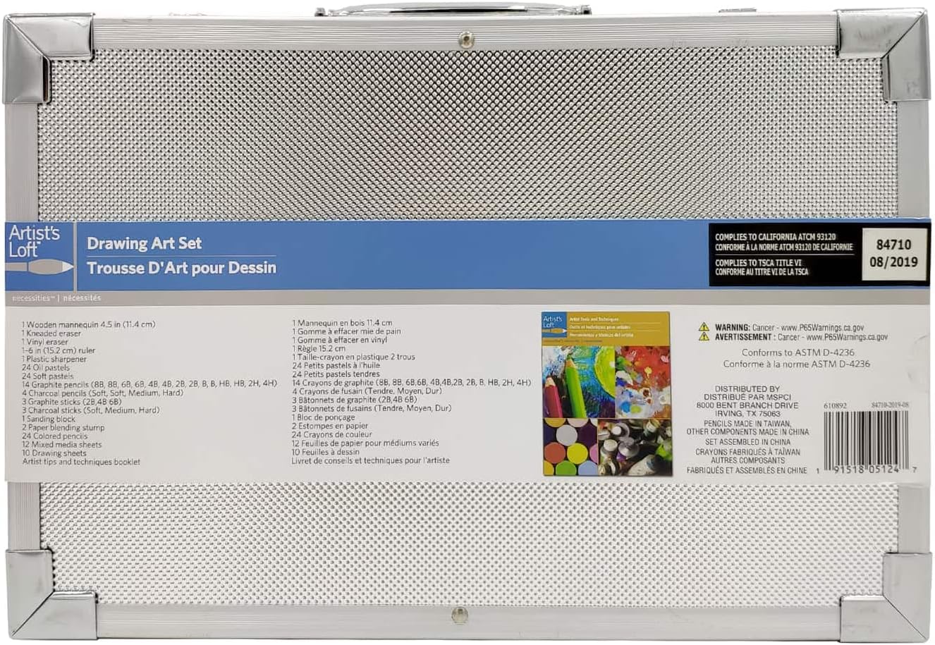 This set is sure to make the perfect gift for any artist. From drawing sheets to pastels, it includes everything needed to create some stunning works of art. Details: Includes 126 pieces Conforms to ASTM D-4236, Contents: 1 wooden mannequin (4.5"/11.4 cm), 1 kneaded erase, 1 vinyl eraser, 1 ruler (6"/15.2 cm), 1 plastic sharpener, 1 sanding block, 2 paper blending stumps, 3 graphite sticks (2B, 4B and 6B), 3 charcoal sticks (soft, medium and hard), 4 charcoal pencils (soft, soft, medium and hard), 10 drawing sheets, 12 mixed media sheets ,14 graphite pencils (8B, 8B, 6B, 6B, 4B, 4B, 2B, 2B, B, B, HB, HB, 2H and 4H), 24 oil pastels, 24 soft pastels ,24 colored pencils, Artist tips and techniques booklet