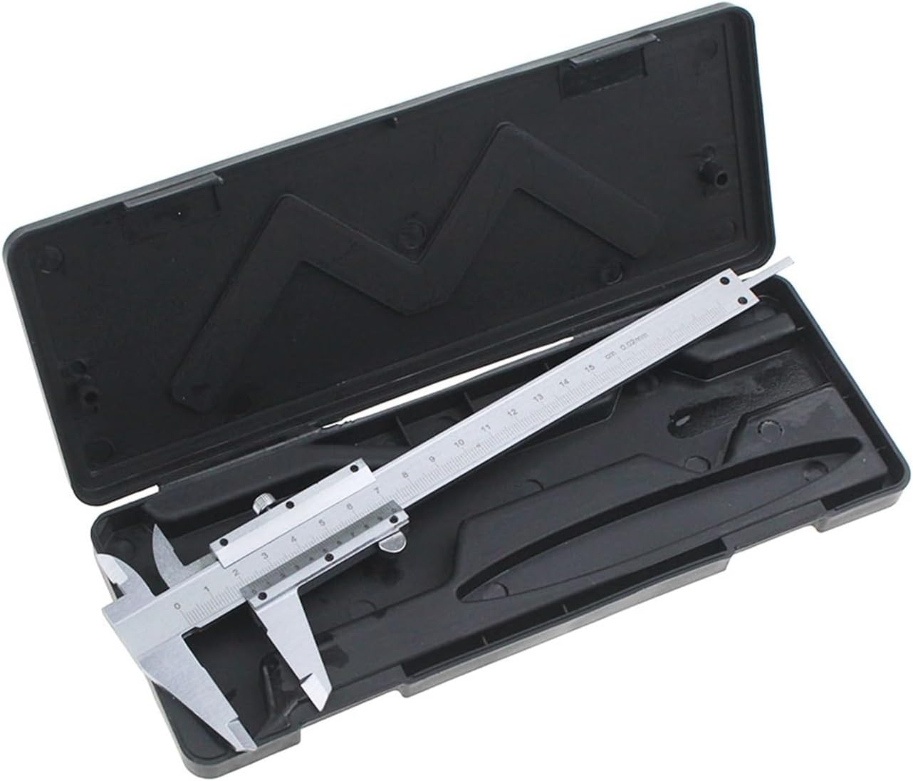 for use in electronics, jeweler, crafts etc Measuring Range: 0-149 mm / 0-5.99 inch Resolution: 0.02mm / 0.00079 in Repeatability: 0.1mm / 0.039 in Package includes: 1PC * carbon steel vernier caliper(With Box)