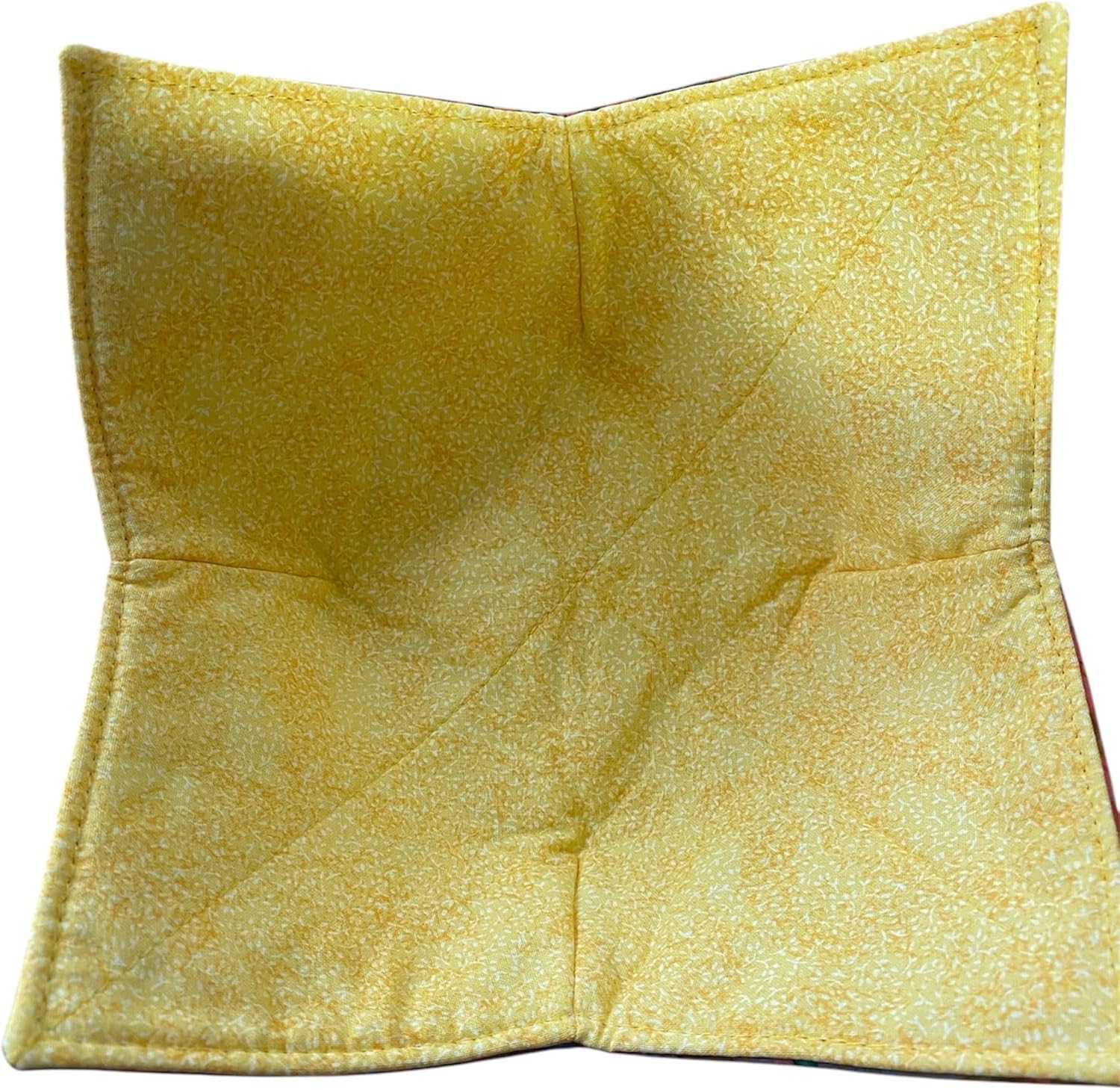 Set of 4 Microwave Safe Bowl Cozies. Add a bowl of soup, place in the microwave and heat. When done, grab two corners, lift out, no burned fingers or fear of dropping the bowl. These are perfect for Rachael Ray soup bowls. These are yellow, blue, orange and green with a coordinating yellow fabric inside. Made of all cotton fabric.