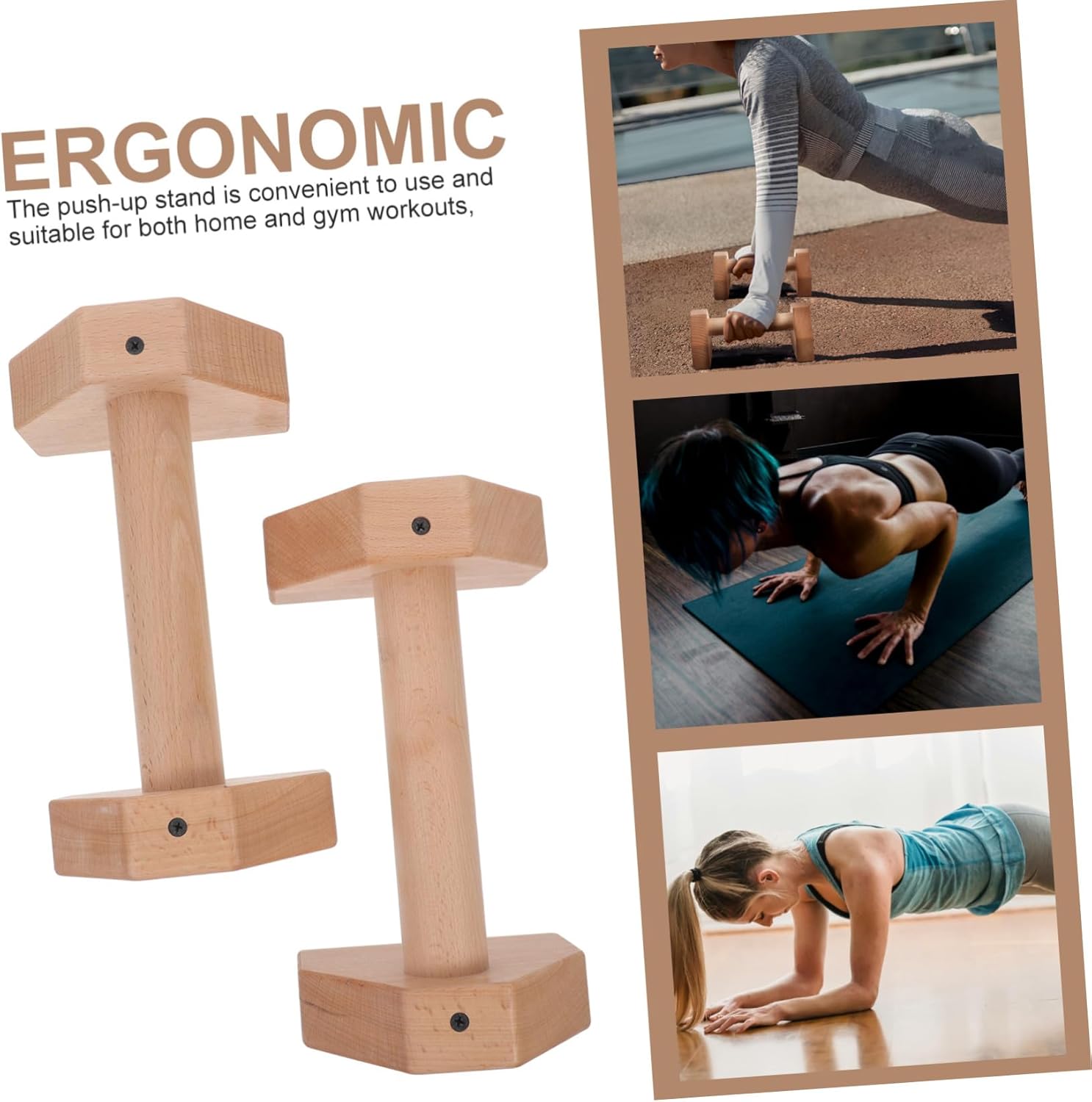 Package Include 2 x push up handles Characteristics - Anti-slip bottom: The push- anti-slip bottom design prevents it from sliding or moving during exercise, ensuring and effective workout fitness pushup board. -Color:Beige strength training pushup stands - Portable and lightweight: The push-up handle is lightweight and portable, making it easy to carry and store when not in use pushup handles. -Size:25.00X14.00X11.00cm/9.82X5.50X4.32in push ups handle -Material:Wood press up handles -Product Info:Push-up stand - Strong and lasting: The push-up handle is built to withstand frequent and intense use, ensuring it remains intact and for years to come push ups equipment. - Versatile use: The push-up bar can be used both indoors and outdoors, providing flexibility and convenience for your workout routine gym accessories. - Smooth surface: The push-up bar has a smooth surface that provides a comfortable grip, suitable for most exercisers pushup board fitness.Goods Informationstrength training equipment Its strong weight-bearing capacity also allows durability.push ups handle Experience the comfortable workout with our Wooden Push-Up Handles.pushup handles With its thickened and anti-slip bottom design, this push-up stand offers superior stability and safety during your workout