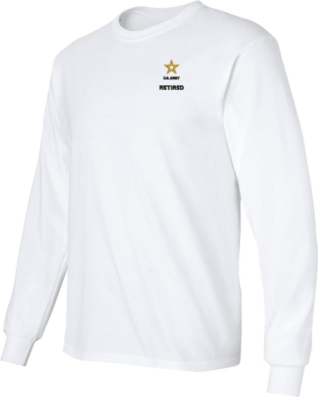MilitaryBest is expanding its line of apparel with this fine U.S. Army Retired Long Sleeve T-Shirt. This Gildan brand long sleeve t-shirt is made using a 6 oz pre-shrunk 100% cotton material. This U.S. Army Retired Long Sleeve T-Shirt will make an excellent addition to your wardrobe or a fine gift. This U.S. Army Retired Long Sleeve T-Shirt is custom embroidered at our facilities in Scottsboro, AL when you place your order.