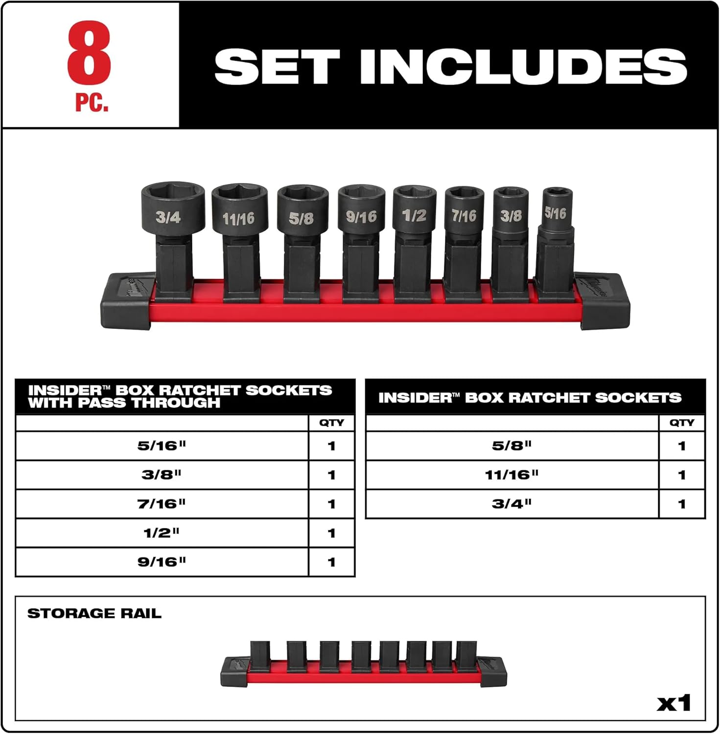 Milwaukee 49-16-1640 Insider Box 8-Piece Ratchet Socket SAE Set