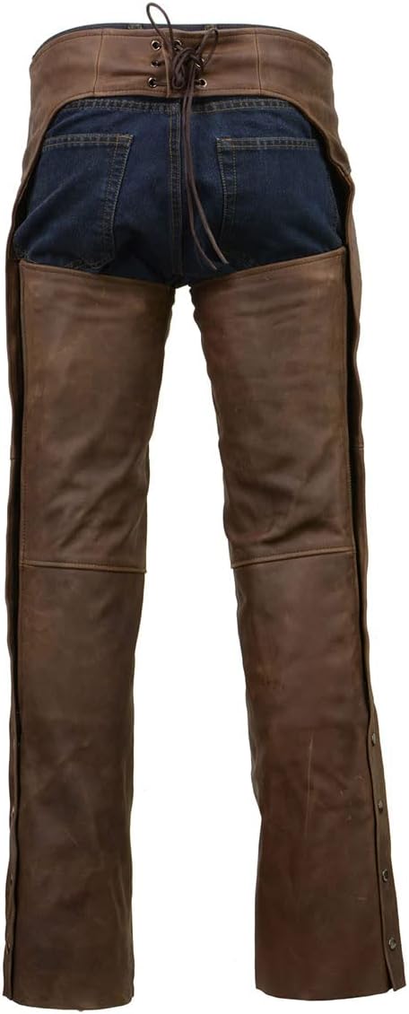 Milwaukee Leather Men's Thermal Lined Premium Leather Motorcycle Bikers Riders Chaps Features Made of Premium Buffalo Leather 1.3-1.4mm Thick Fully Removable Quilted Snap Out Liner for All Season Riding Mesh Liner Under Thermal for Summer Riding Zipper Side Entry/Open Closure with Lower Snap Button Closure Built-In Adjustable Belt Adjustable Back Lace for Added Room When Needed Genuine YKK Zippers - Known for Longevity and Durability Unhemmed – Cut to Your Desired Length / Height Milwaukee Leather: Made for Riders, Built to Last