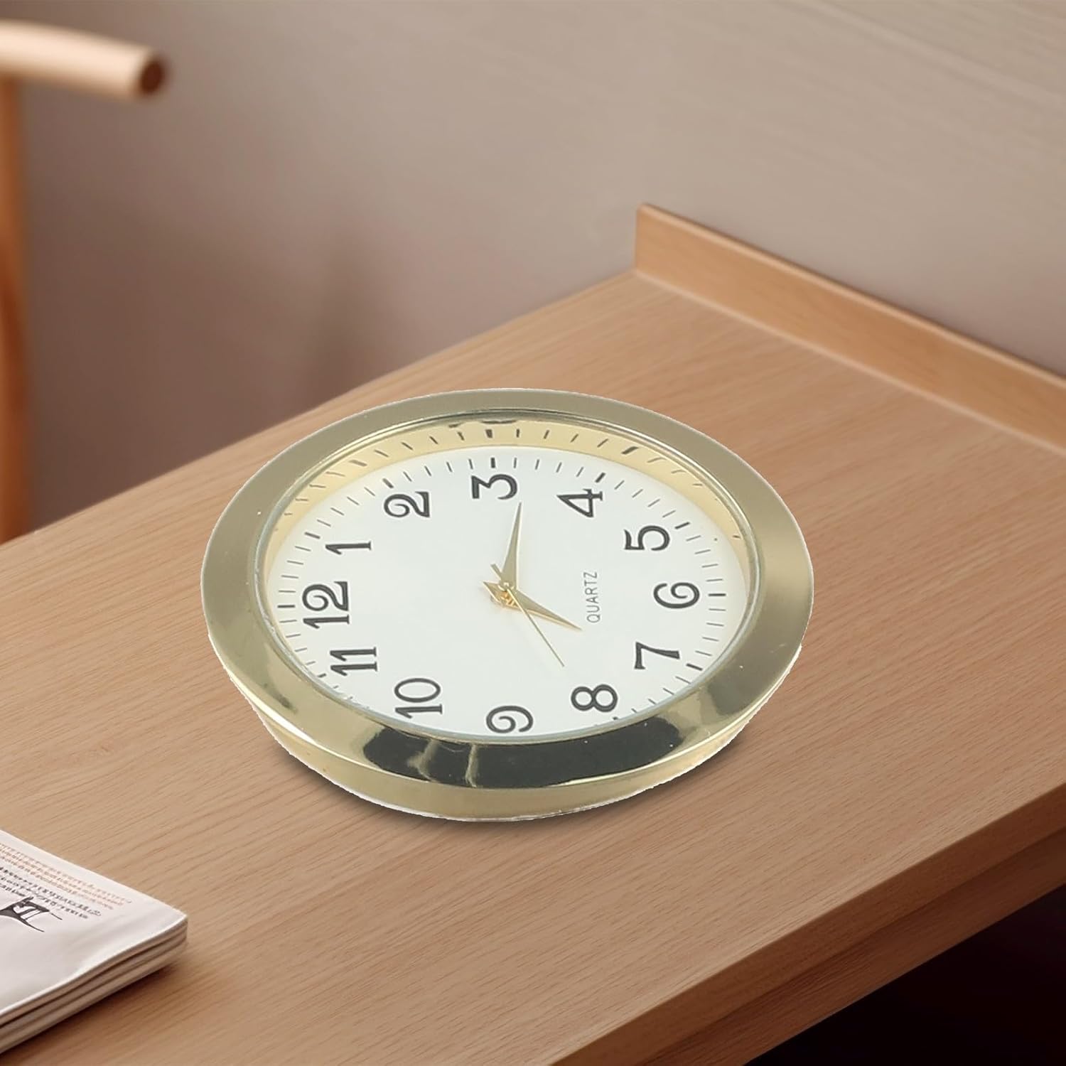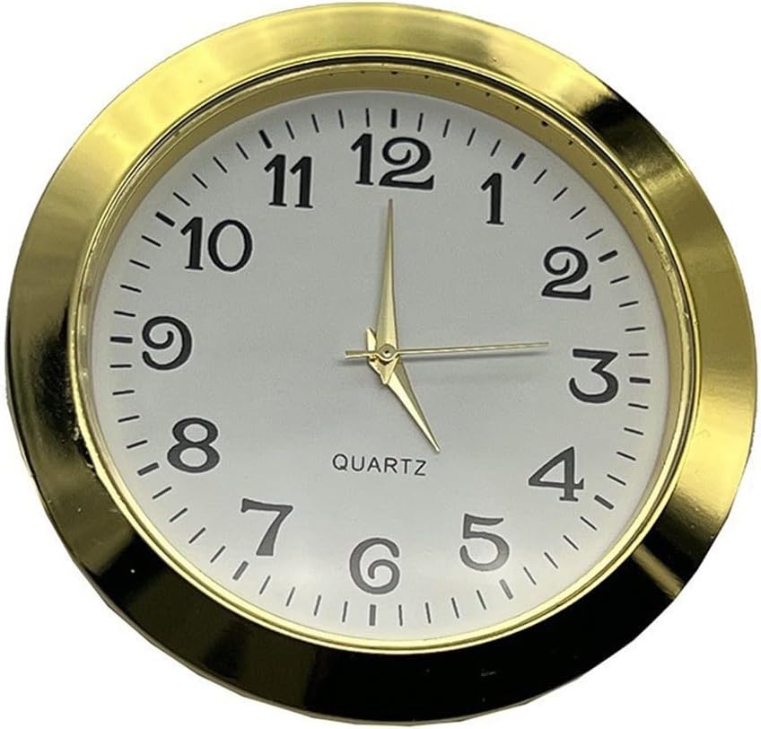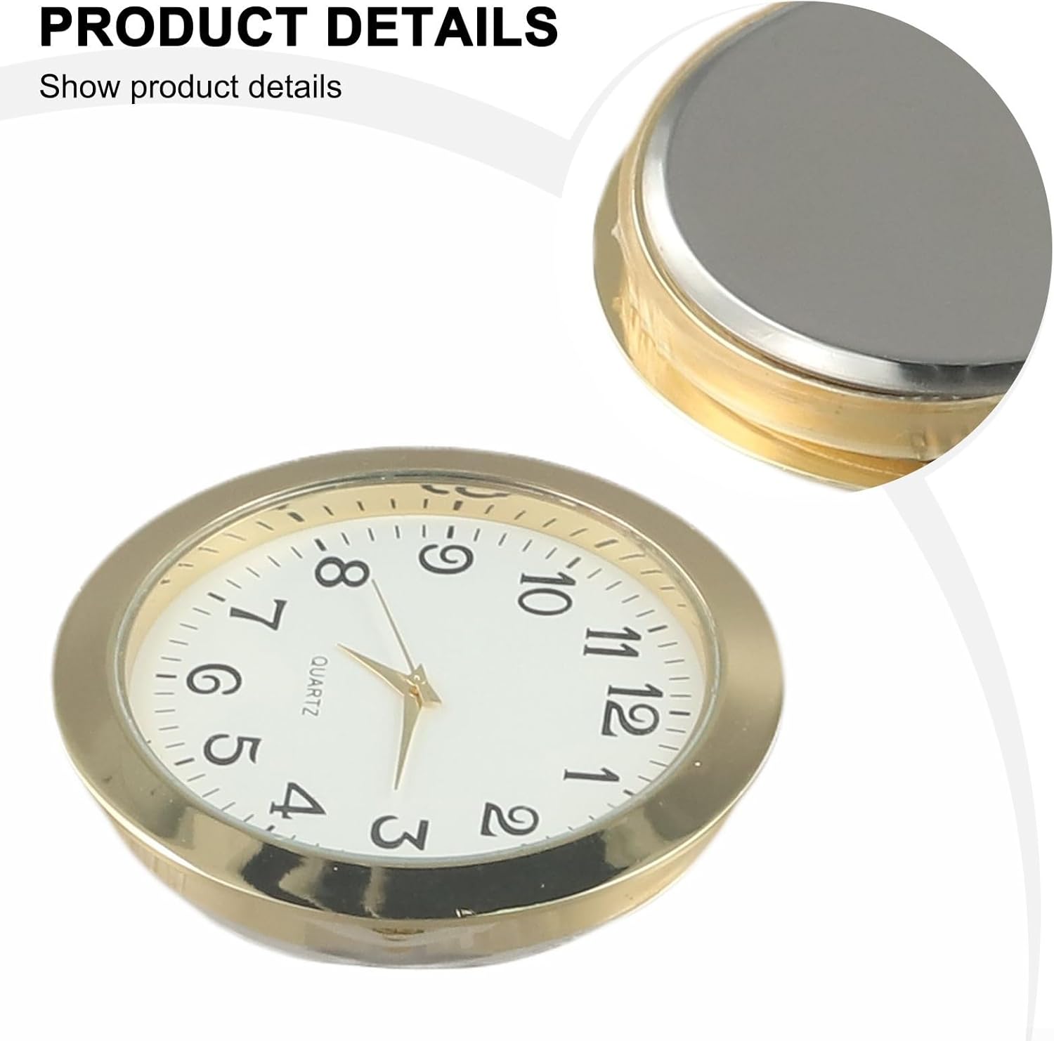 Features:*Mini Clock Insert Quartz Movement: This compact round quartz clock insert has an outer diameter of 2.17 inches (55mm), with a mounting diameter of 1.77 inches (45mm) and an installation depth of 1/4 inch (6mm). Its size makes it an excellent addition to small craft designs and decorative projects.*Elegant Bezel and Clear Numerals: The clock insert offers a refined appearance with your choice of gold or silver-tone bezel, infusing your project with sophistication. Roman or Arabic numerals provide clear legibility, pairing both practical and aesthetic appeal.*Durable Construction: Built with a sturdy stainless steel back and a mineral glass lens that resists scratches, this mini clock insert is crafted for extended use and maintains its flawless look over time.*Creative Application: Explore countless possibilities by incorporating this miniature clock into unique art pieces, custom craft projects, or functional designs. Its versatile form supports endless creative expressions.*Thoughtful Craft Addition: Enhance your personalized projects or surprise someone with your handmade creations using this mini clock insert. The meticulous design and fine details elevate any craft or piece of decor.Specifications:*Part Name: Clock Insert Quartz Movement*Material: Stainless Steel, Glass*Size: Outer diameter: 55mm; Back: 45mm; Height: 6mm*Color: Gold or Silver BezelPackage Content:1 * Clock Insert Quartz Movement