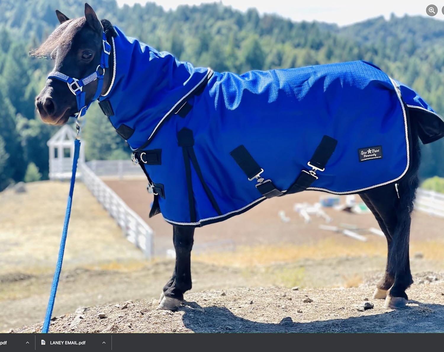 Our Star Point Horsemanship 1200D RipStop Waterproof Blanket with 350 Mid-Weight Fill is meticulously crafted from the highest quality ripstop material, offering unparalleled durability and protection. Designed to keep your Mini or Pony dry and shielded from harsh weather conditions, it features a removable neck piece for optional neck protection, ensuring comprehensive coverage and comfort. Polyester inner lining that is fully breathable Our turnout Sheets are more than just Sheets; they're a shield against the elements. Rain, snow, wind nothing can breach their defenses. Designed with the highest quality materials sourced from around the world, tailored to strict specifications based on customer needs and feedback, our turnout horse Sheets ensure your horse stays dry, comfortable, and protected, even in the coldest and wettest of conditions. How to Choose the Right Size Blanket Blankets are NOT sized by height of horse; they are measured around the body. MEASURE YOUR HORSE - CENTER OF CHEST to CENTER OF TAIL BONE to get correct blanket/sheet measurement. If your horse has a winter coat or has a stocky body, we recommend ordering one size up from your measurement. How to care for your horse blanket 1) Prep for Wash: Brush off excess dirt and hair from the blanket. 2) Use Mesh Wash Bag: Place the blanket in a mesh wash bag to protect straps and buckles 3) Gentle Machine Wash: Use a mild soap on a gentle cycle, avoiding detergents or fabric softeners. 4) Avoid Fabric Softeners: These can compromise the waterproof coating. 5) Line Dry Only: Never tumble dry; hang the blanket to air dry completely.