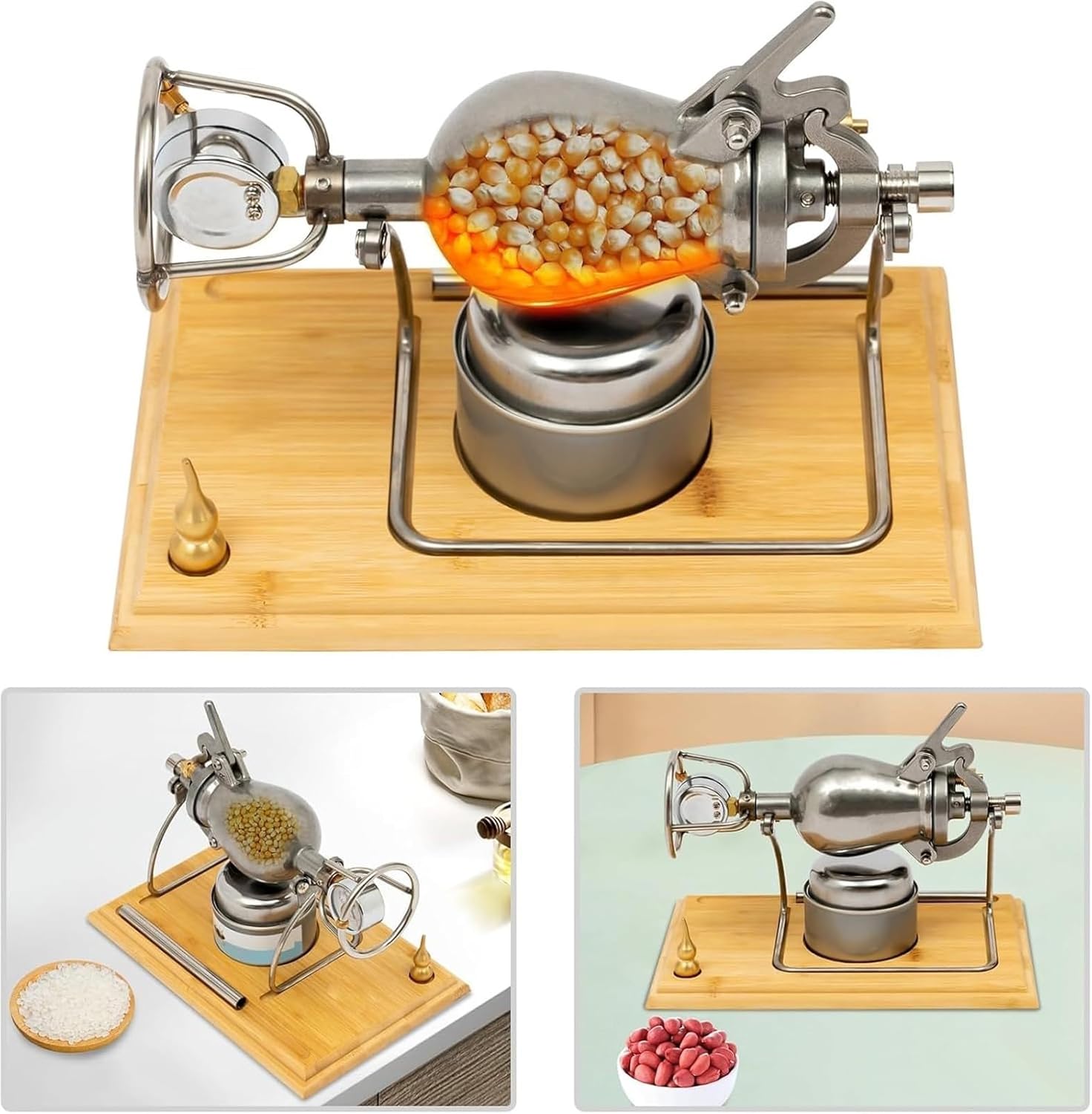 To ensure optimal results, avoid exceeding 15 minutes of preheating time when using a cold pan. Should you notice any burning smells or suspect leakage during operation, immediately open the pot to prevent overheating. Remember to fill the container halfway, and always be mindful of high temperatures and pressures.Please note the following when using:️1. when adding corn kernels to the machine, only add half the contents of the container, do not add too much or too little.️2. tighten the top screw️3. take the wrench and tighten it further️4. when the pressure reaches 0.9 pressure, the corn can be removed from the oven. When the corn is removed from the oven, the bottom should be placed in the bag. Do not point it directly at people to avoid unnecessary damage.Specification:Product Name: Stainless Steel Popcorn MakerMaterial: 304 stainless steel integrated castingOperation mode: hand HeatingColor:SilverWeight: 2kg8 capacity optionsPackage:1 x Mini Popcorn Machine SetWarm tips:This product is retro mini popcorn machine popcorn poppers for home, and it has the function of popcorn. It is not recommended to pop it. If you need to burn a pot and play it, you must follow the instruction video
